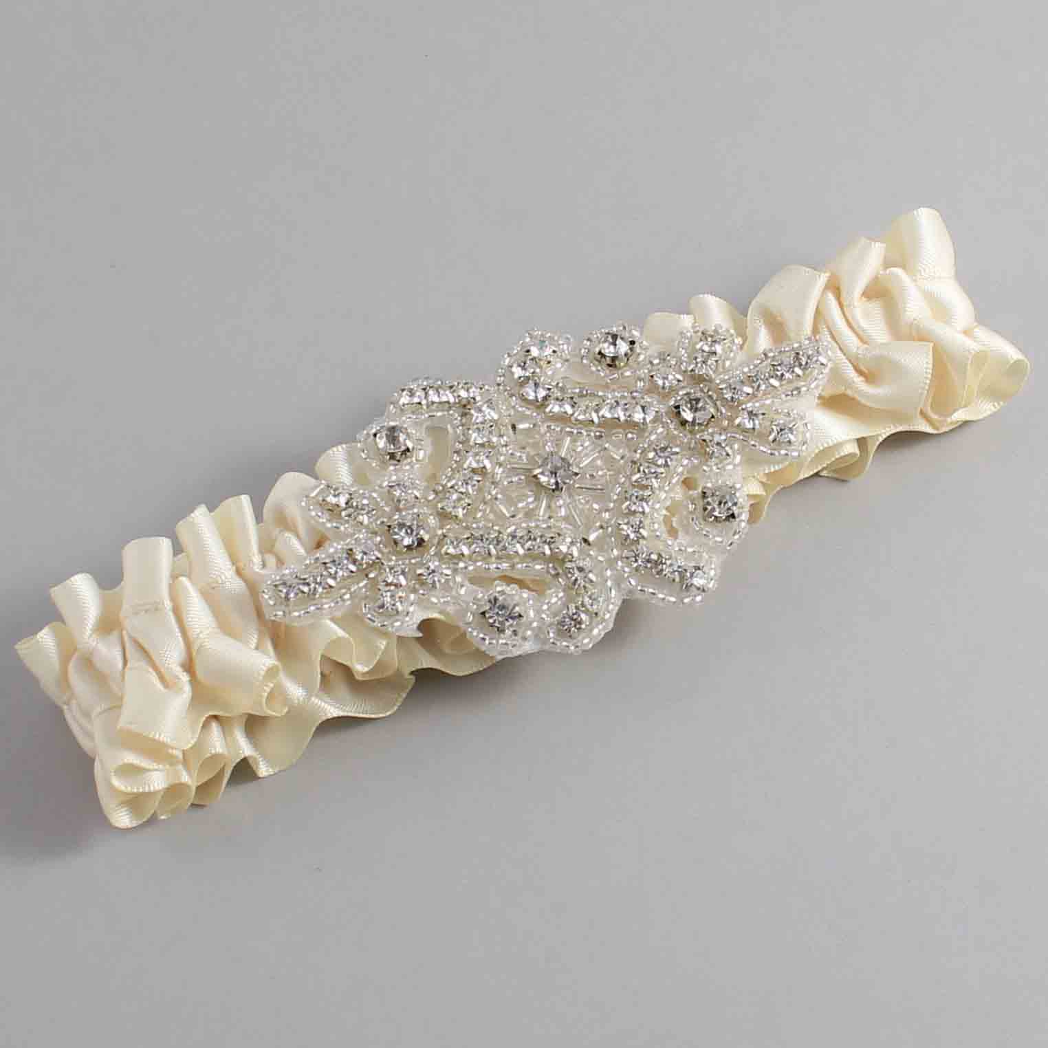 Beige Satin Wedding Garter / Solid Ivory Wedding Garters / Heather #01-A07-(815-815)-Silver