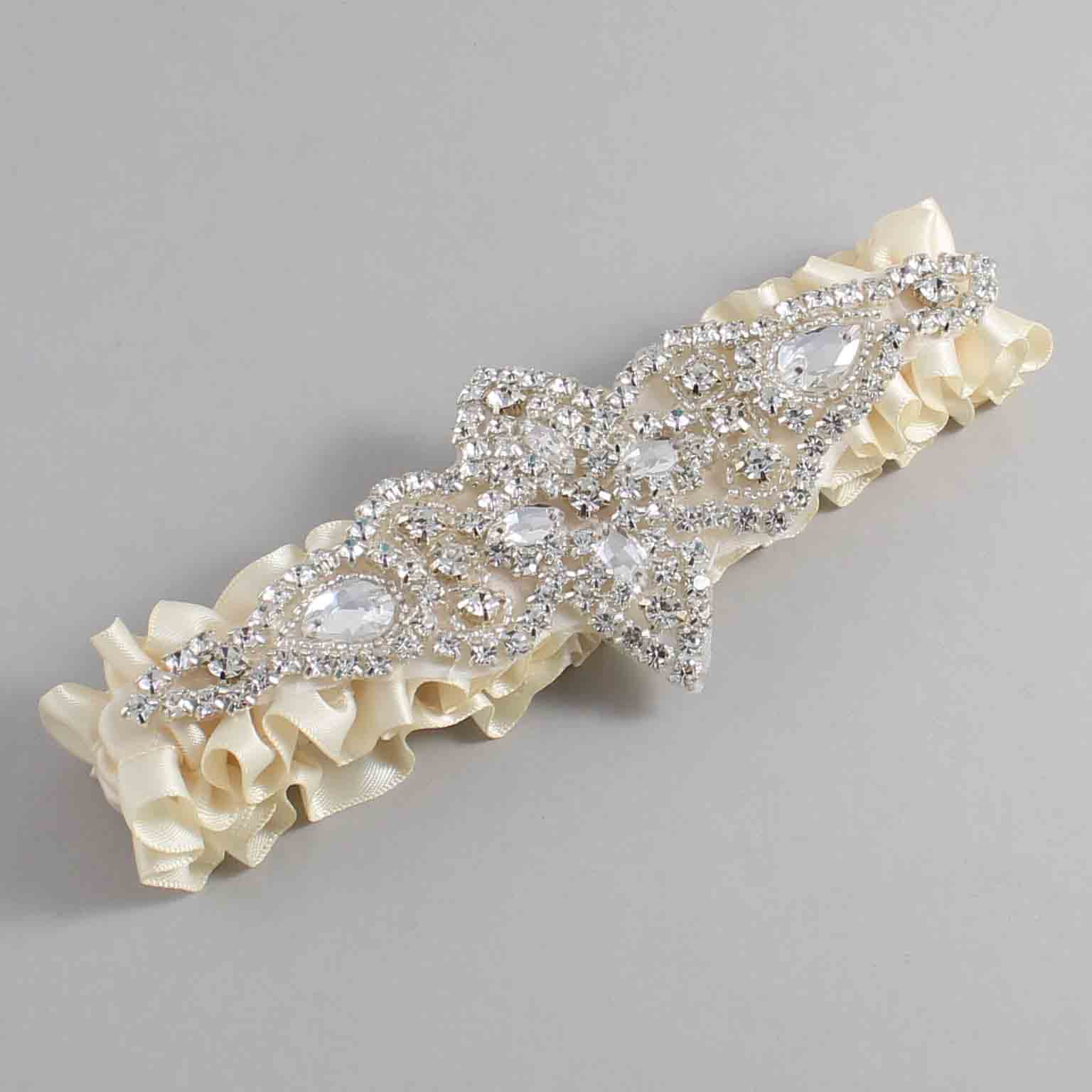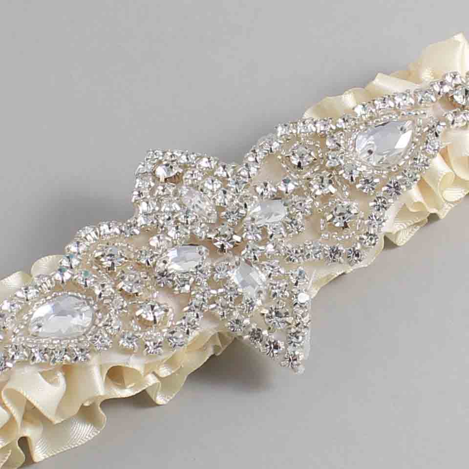 Beige Satin Wedding Garter / Solid Ivory Wedding Garters / Lorine #01-A09-(815-815)-Silver