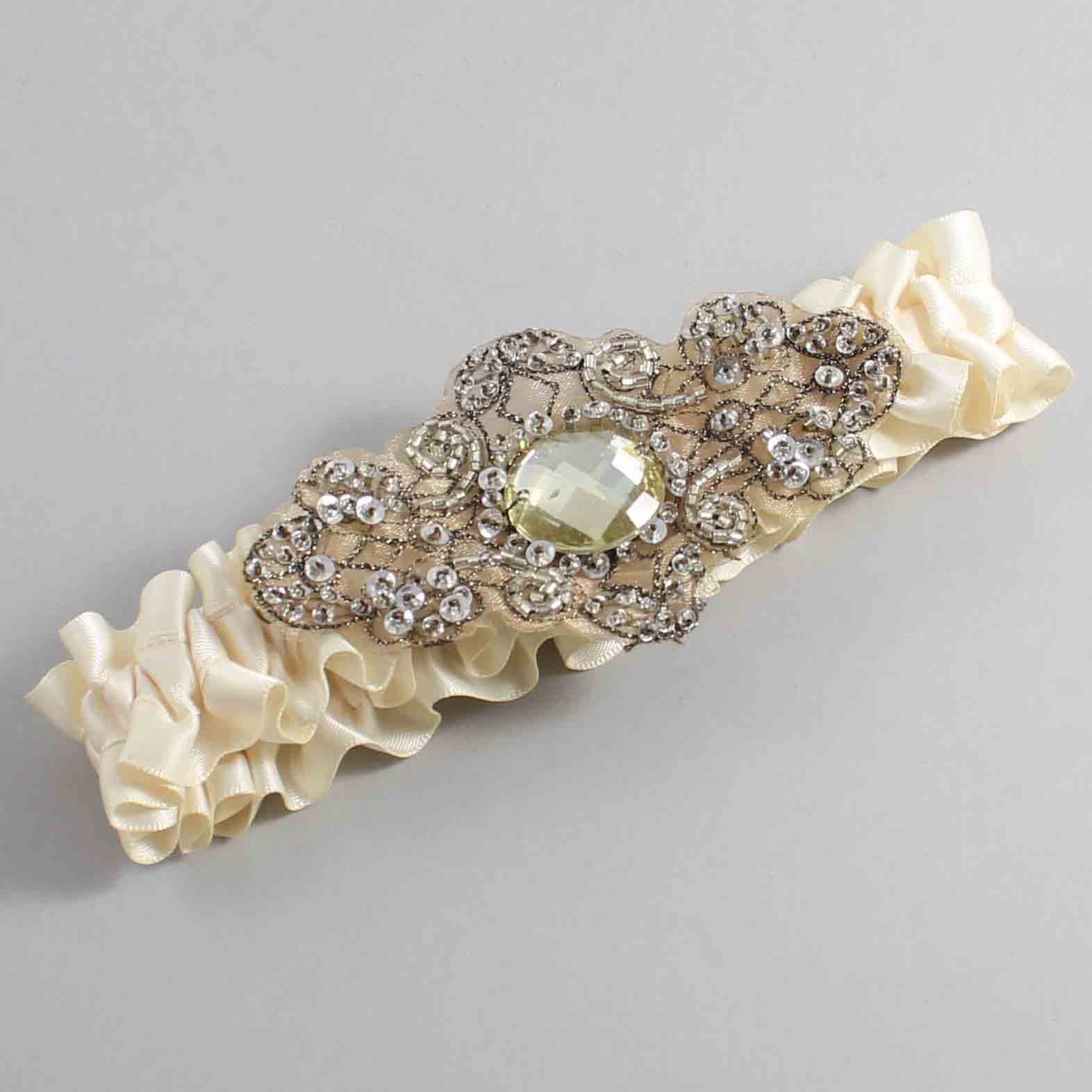 Beige Satin with Brown Wedding Garter / Ivory Wedding Garters / Bijou # 01-A01-(815-815)-Antique