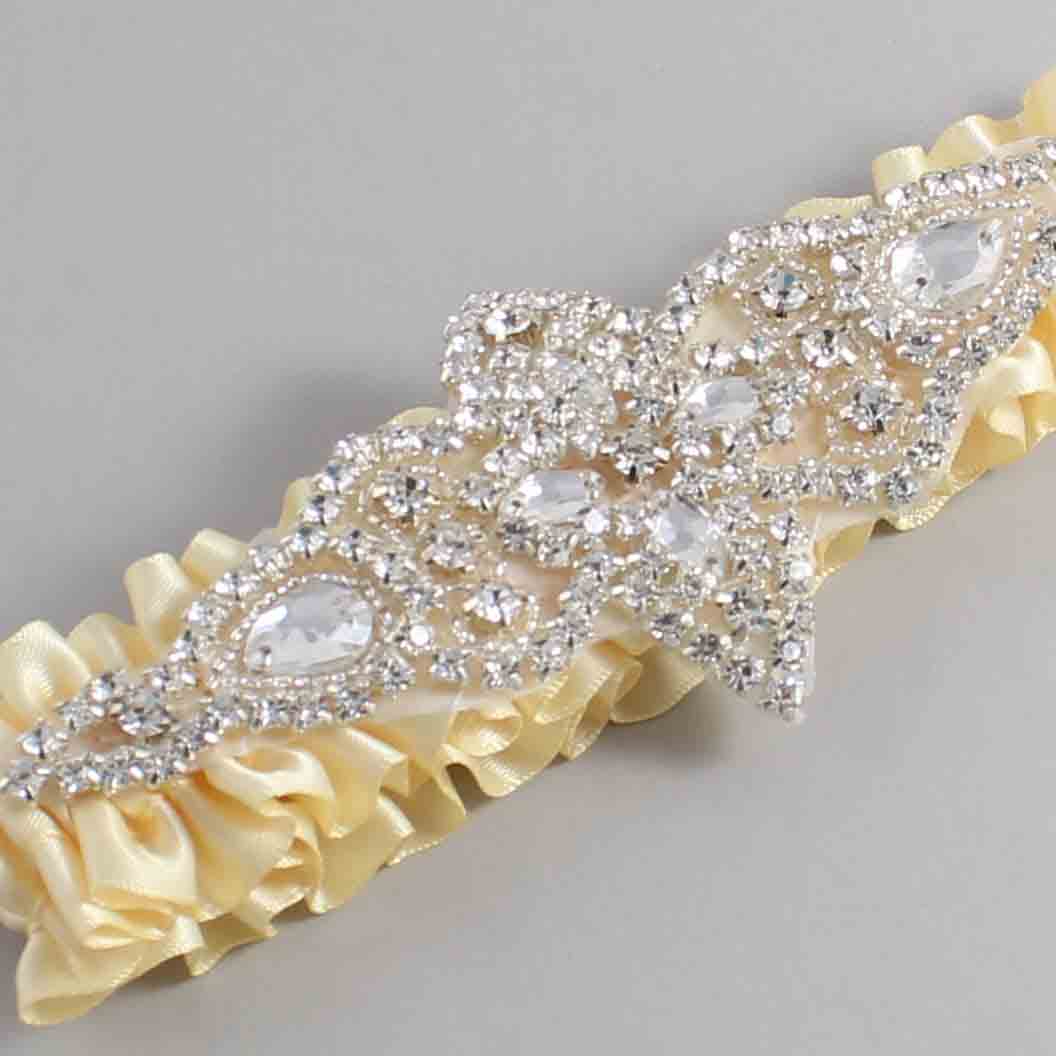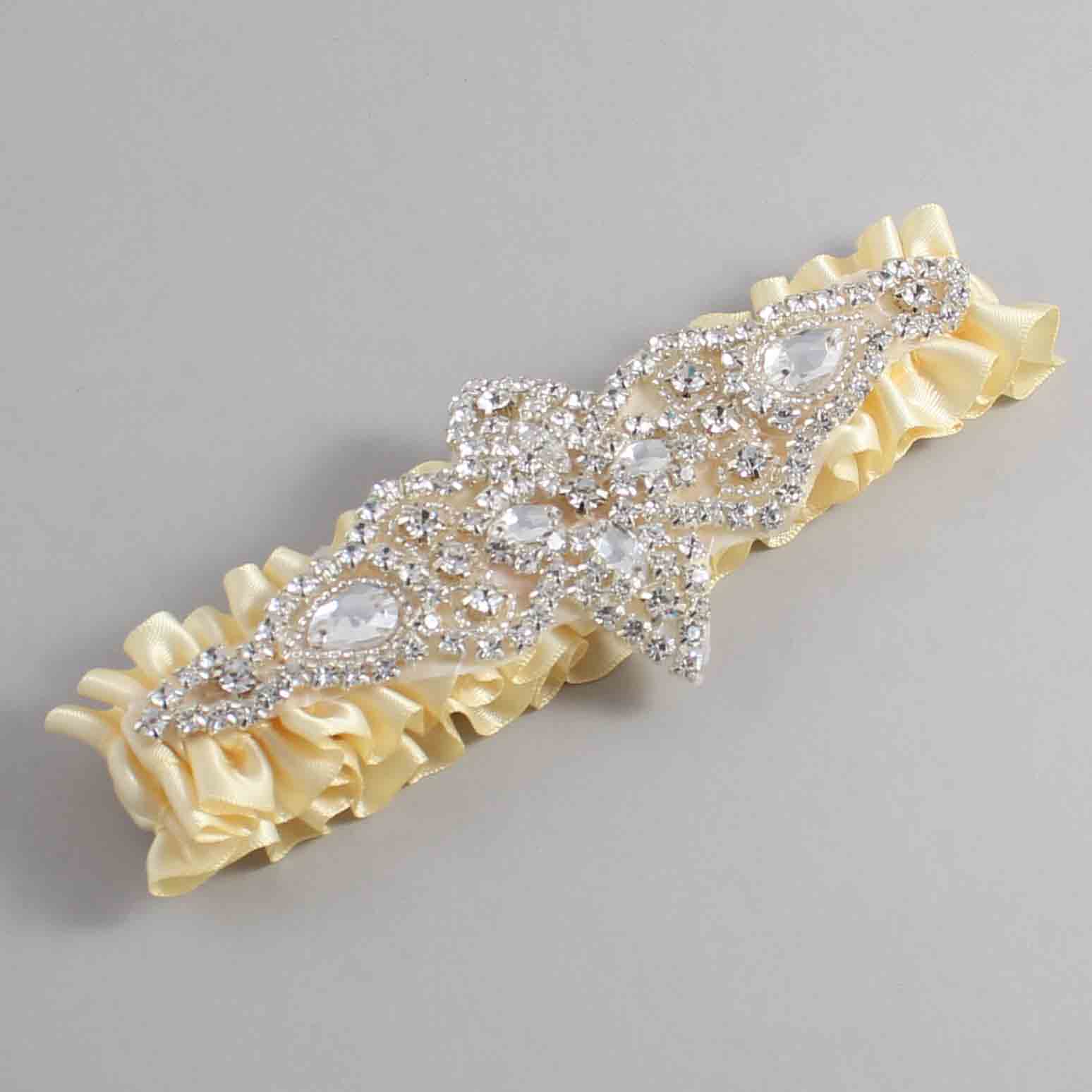 Buttermilk Satin Wedding Garter / Solid Yellow Wedding Garters / Lorine #01-A09-(824-824)-Silver