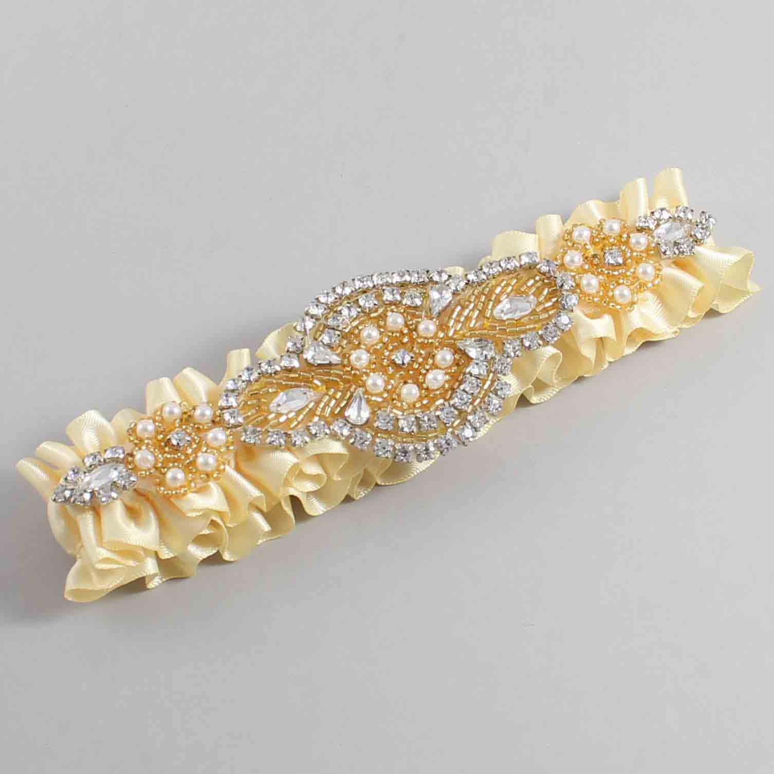 Buttermilk Satin with Gold Wedding Garter / Yellow Wedding Garters / Charlotte #01-A05-(824-824)-Gold