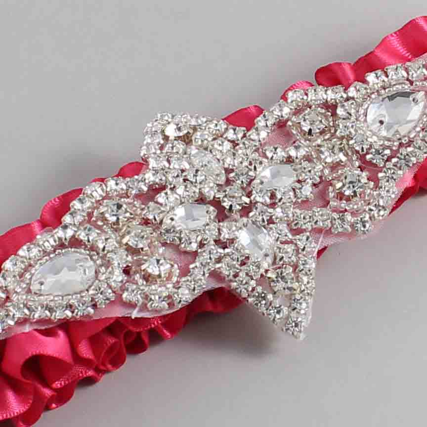 Camellia Rose Satin Wedding Garter / Solid Pink Wedding Garters / Lorine #01-A09-(157-157)-Silver