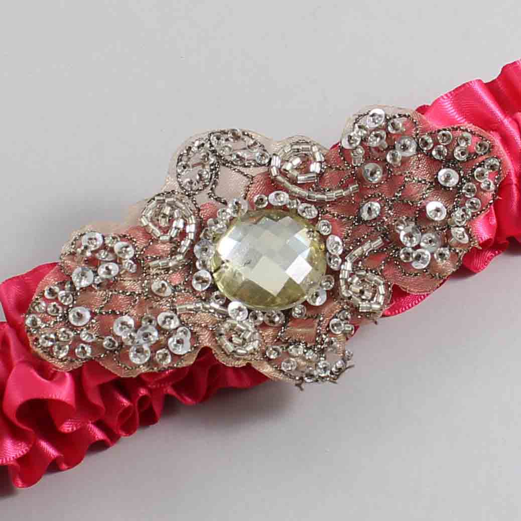 Camellia Rose Satin with Brown Wedding Garter / Pink Wedding Garters / Bijou # 01-A01-(157-157)-Antique