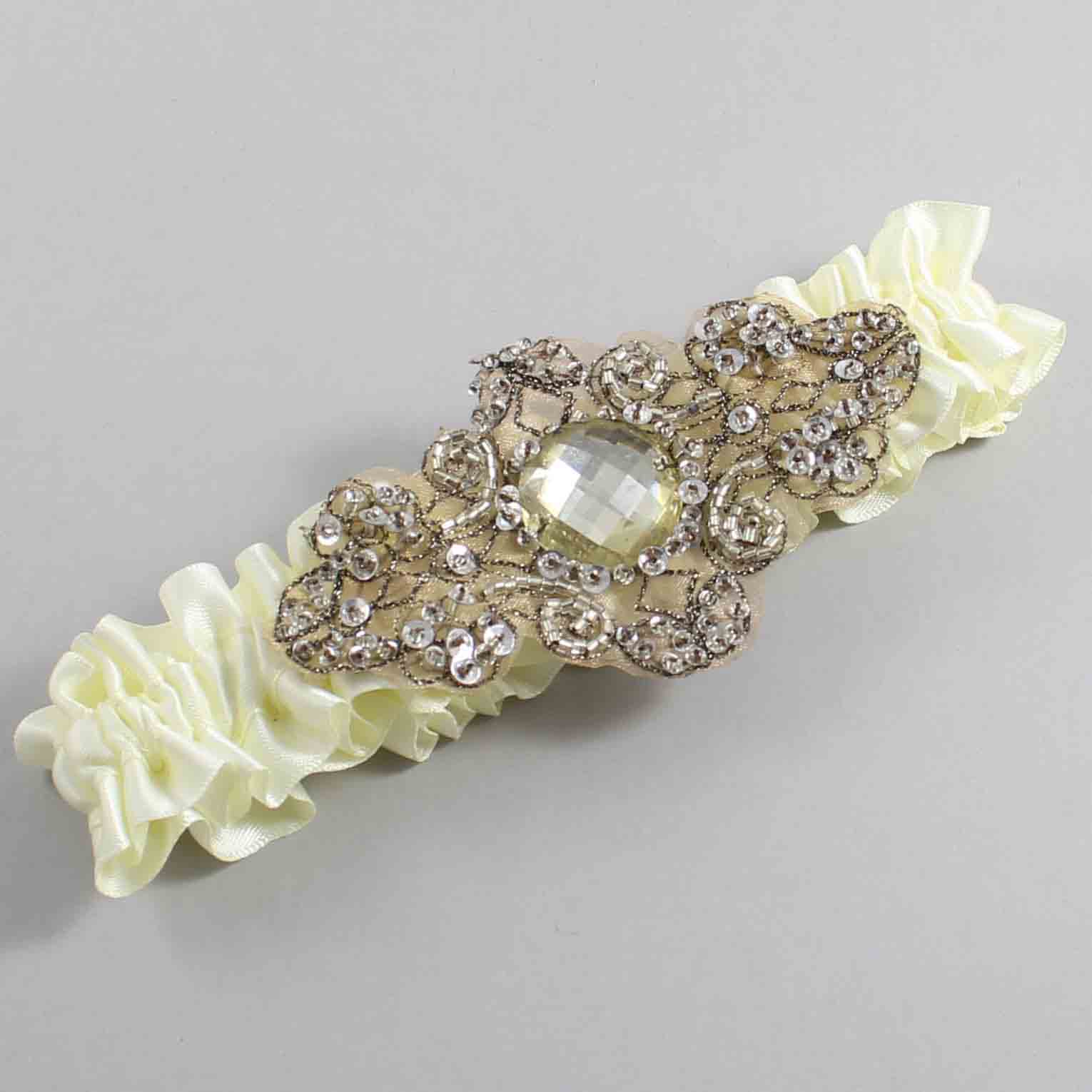 Candlelight Satin with Brown Wedding Garter / Ivory Wedding Garters / Bijou # 01-A01-(820-820)-Antique