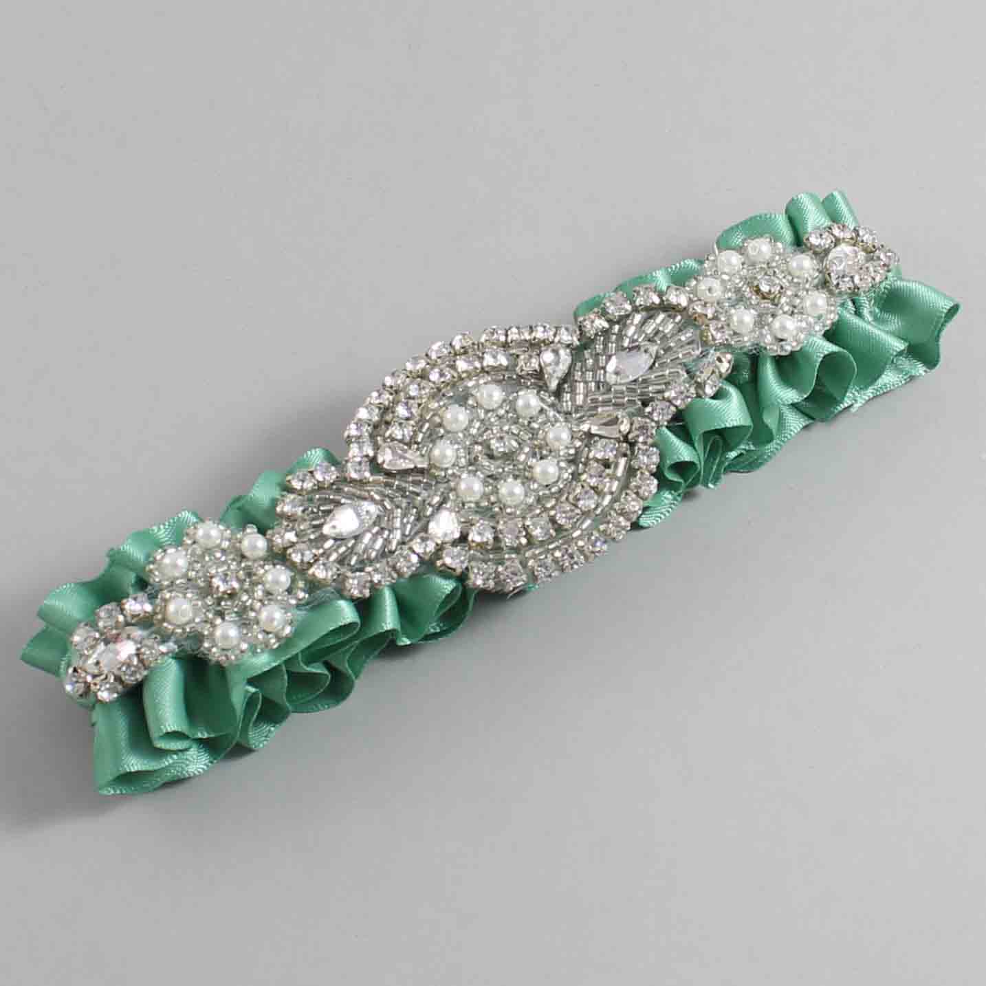 Celadon Satin Wedding Garter / Solid Green Wedding Garters / Charlotte #01-A06-(564-564)-Silver