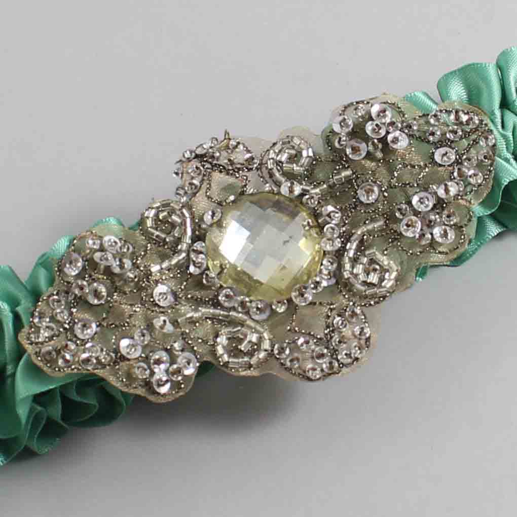 Celadon Satin with Brown Wedding Garter / Green Wedding Garters / Bijou # 01-A01-(564-564)-Antique