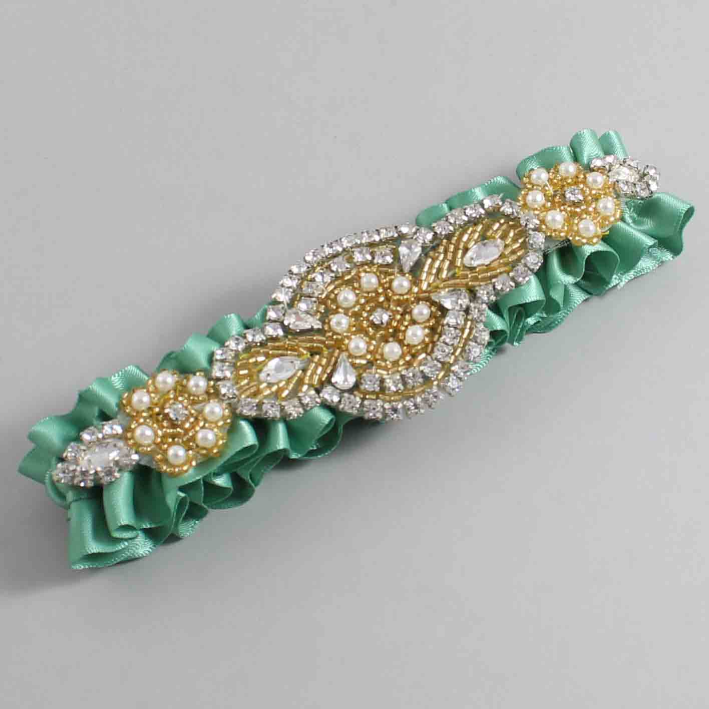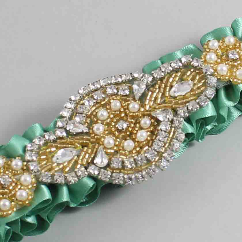 Celadon Satin with Gold Wedding Garter / Green Wedding Garters / Charlotte #01-A05-(564-564)-Gold