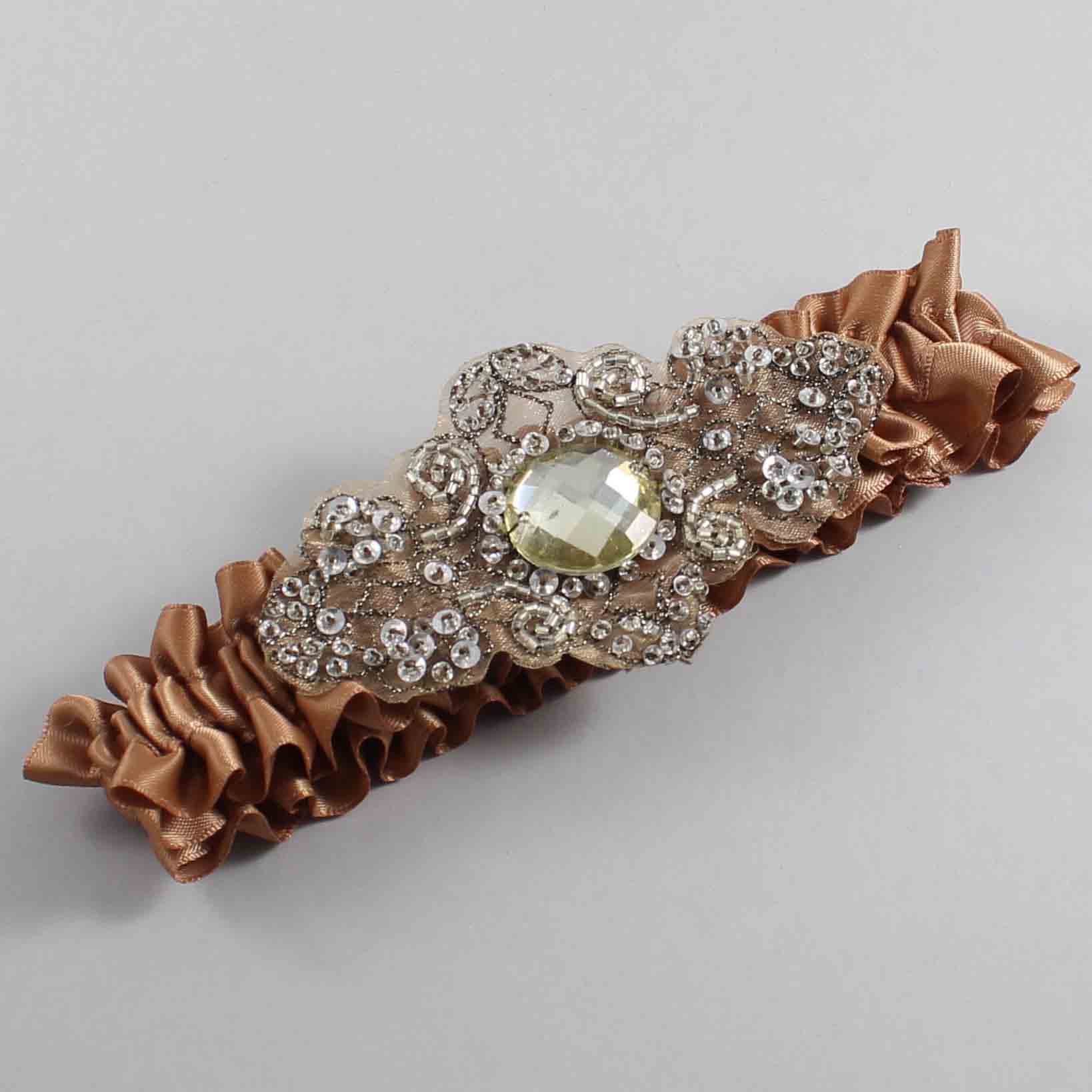 Chipmunk Satin with Brown Wedding Garter / Brown Wedding Garters / Bijou # 01-A01-(845-845)-Antique