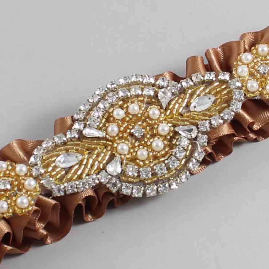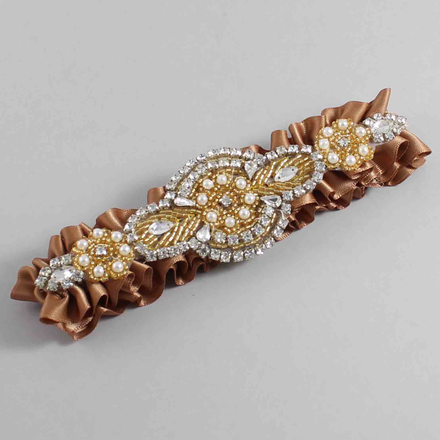Chipmunk Satin with Gold Wedding Garter / Brown Wedding Garters / Charlotte #01-A05-(845-845)-Gold