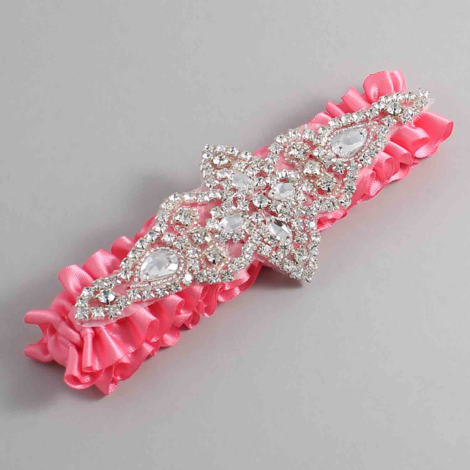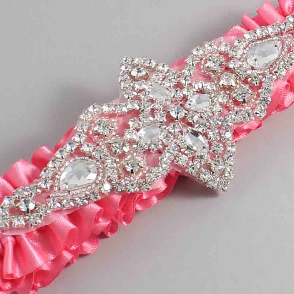 Coral Rose Satin Wedding Garter / Solid Pink Wedding Garters / Lorine #01-A09-(210-210)-Silver