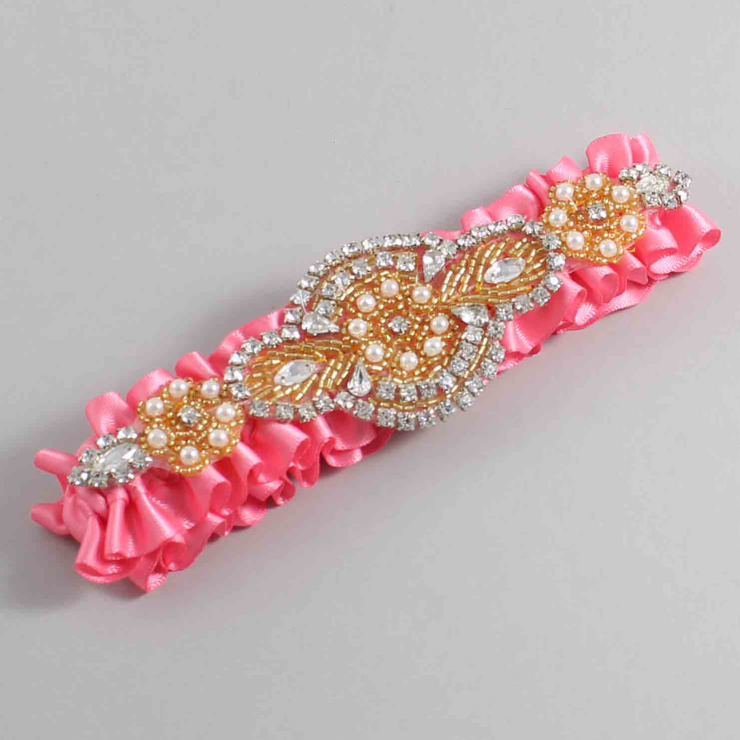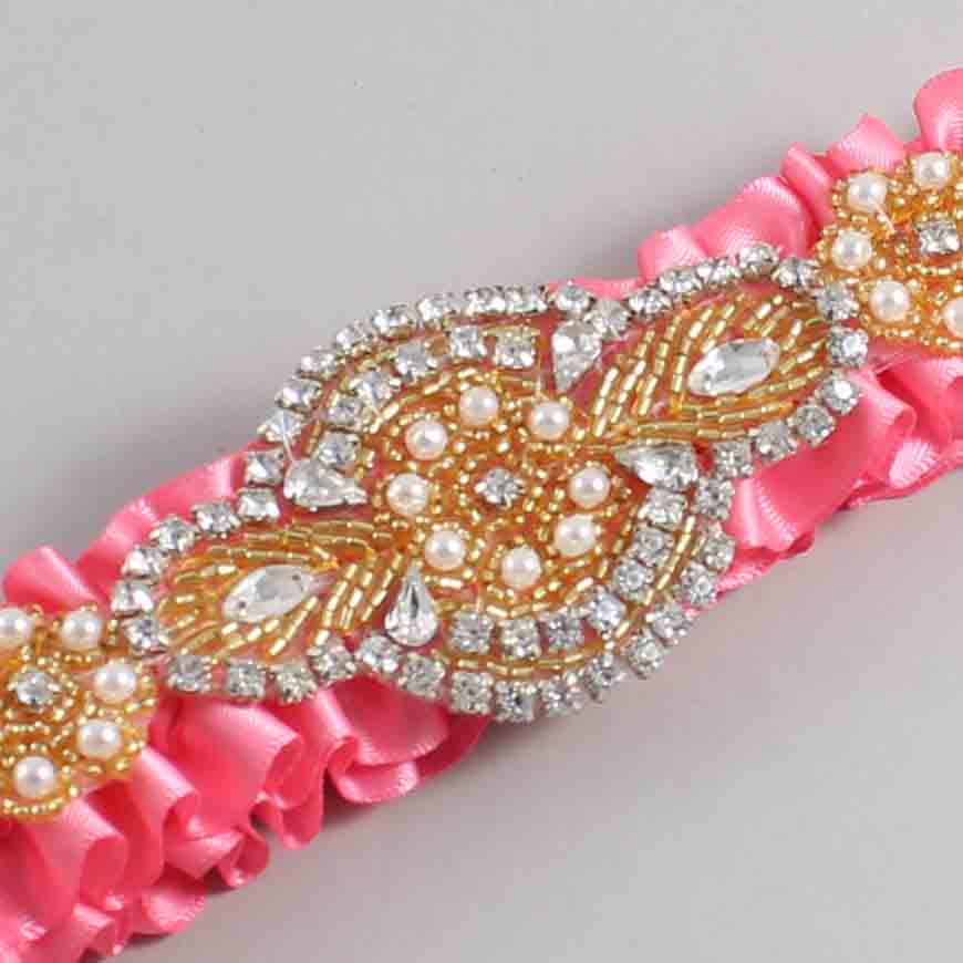 Coral Rose Satin with Gold Wedding Garter / Pink Wedding Garters / Charlotte #01-A05-(210-210)-Gold