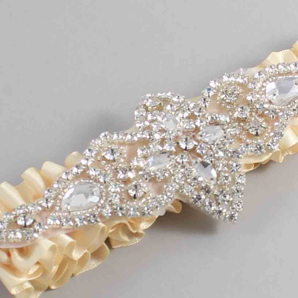 Cream Satin Wedding Garter / Solid Ivory Wedding Garters / Lorine #01-A09-(882-882)-Silver