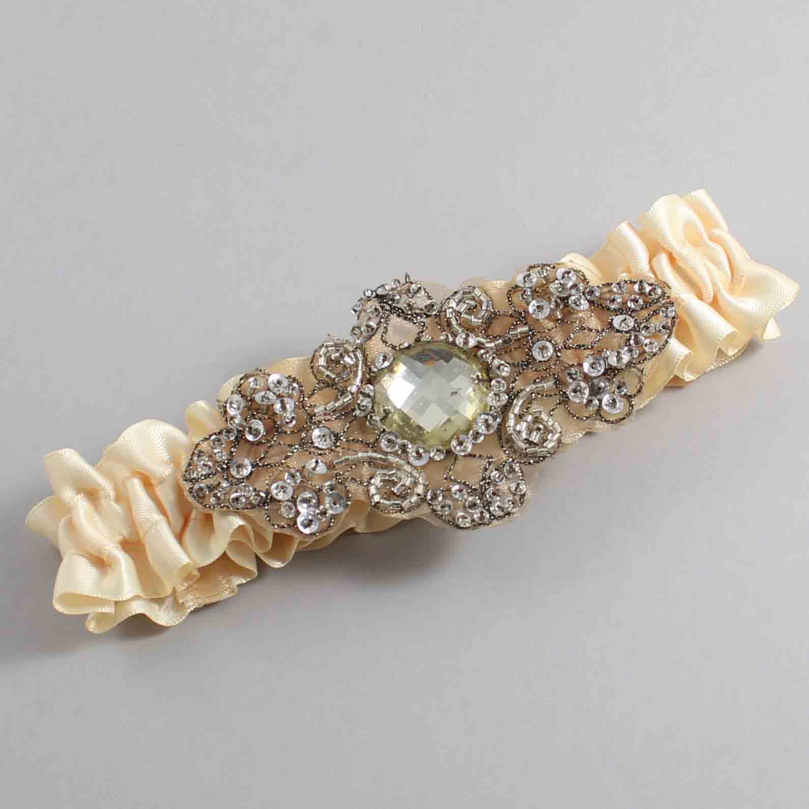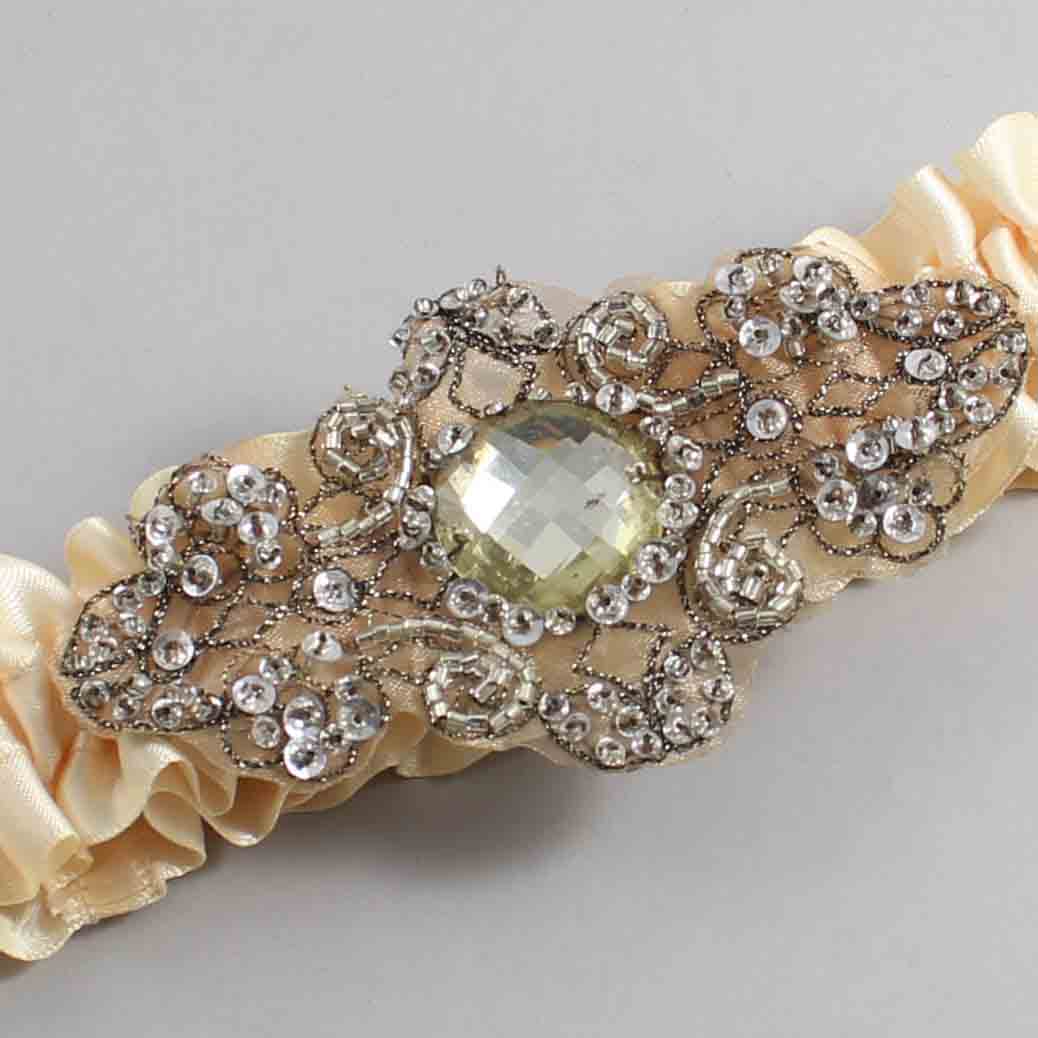 Cream Satin with Brown Wedding Garter / Ivory Wedding Garters / Bijou # 01-A01-(882-882)-Antique