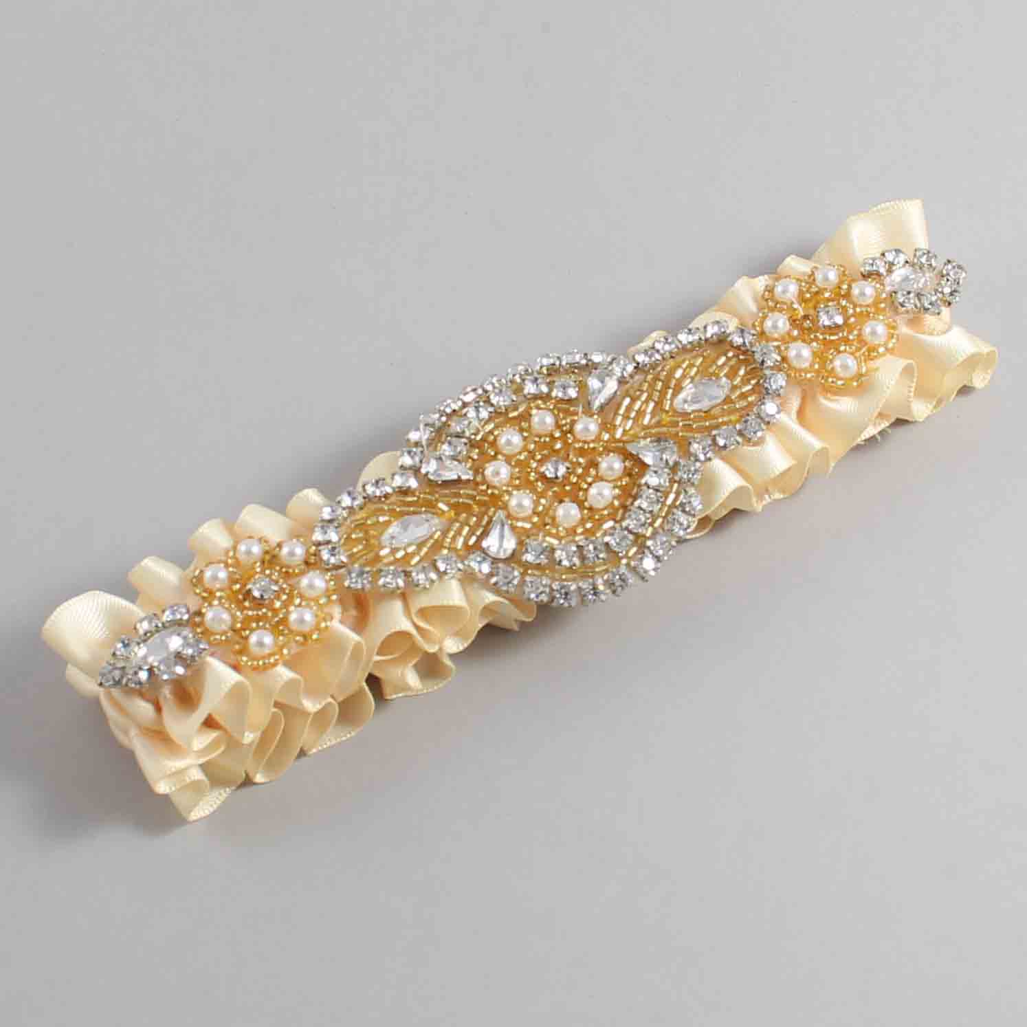 Cream Satin with Gold Wedding Garter / Ivory Wedding Garters / Charlotte #01-A05-(882-882)-Gold