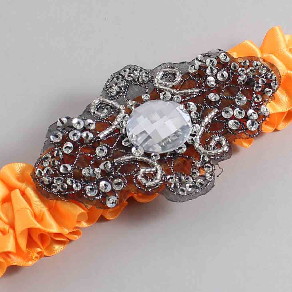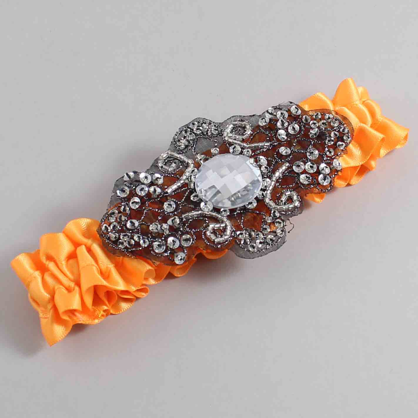 Curry Satin with Black Wedding Garter / Orange Wedding Garters / Bijou #01-A02-(772-772)-Black