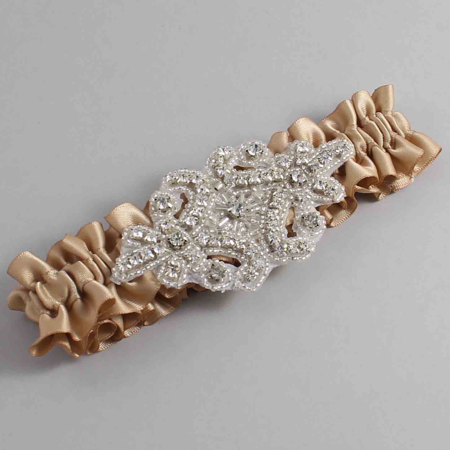 Desert Sand Satin Wedding Garter / Solid Brown Wedding Garters / Heather #01-A07-(830-830)-Silver