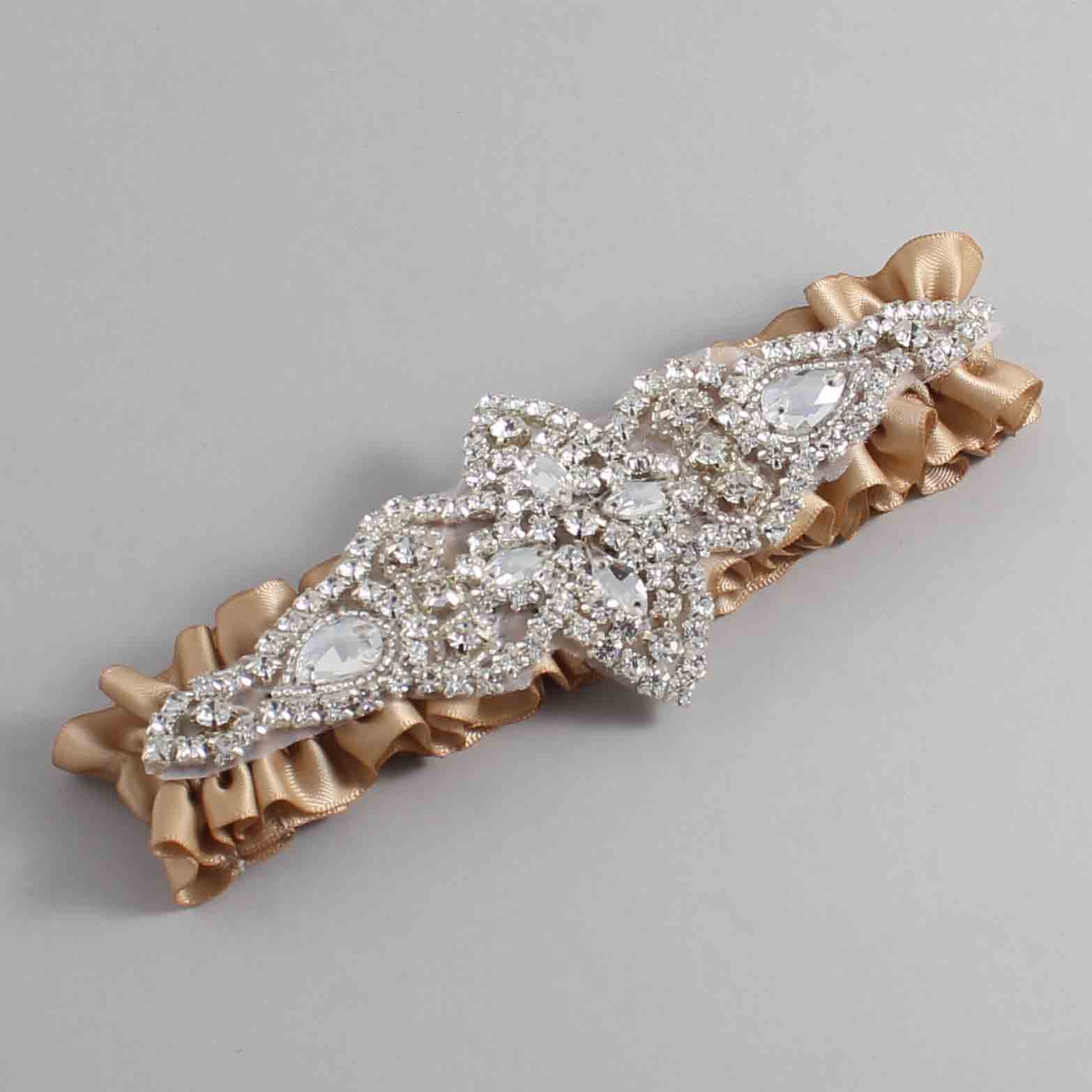 Desert Sand Satin Wedding Garter / Solid Brown Wedding Garters / Lorine #01-A09-(830-830)-Silver