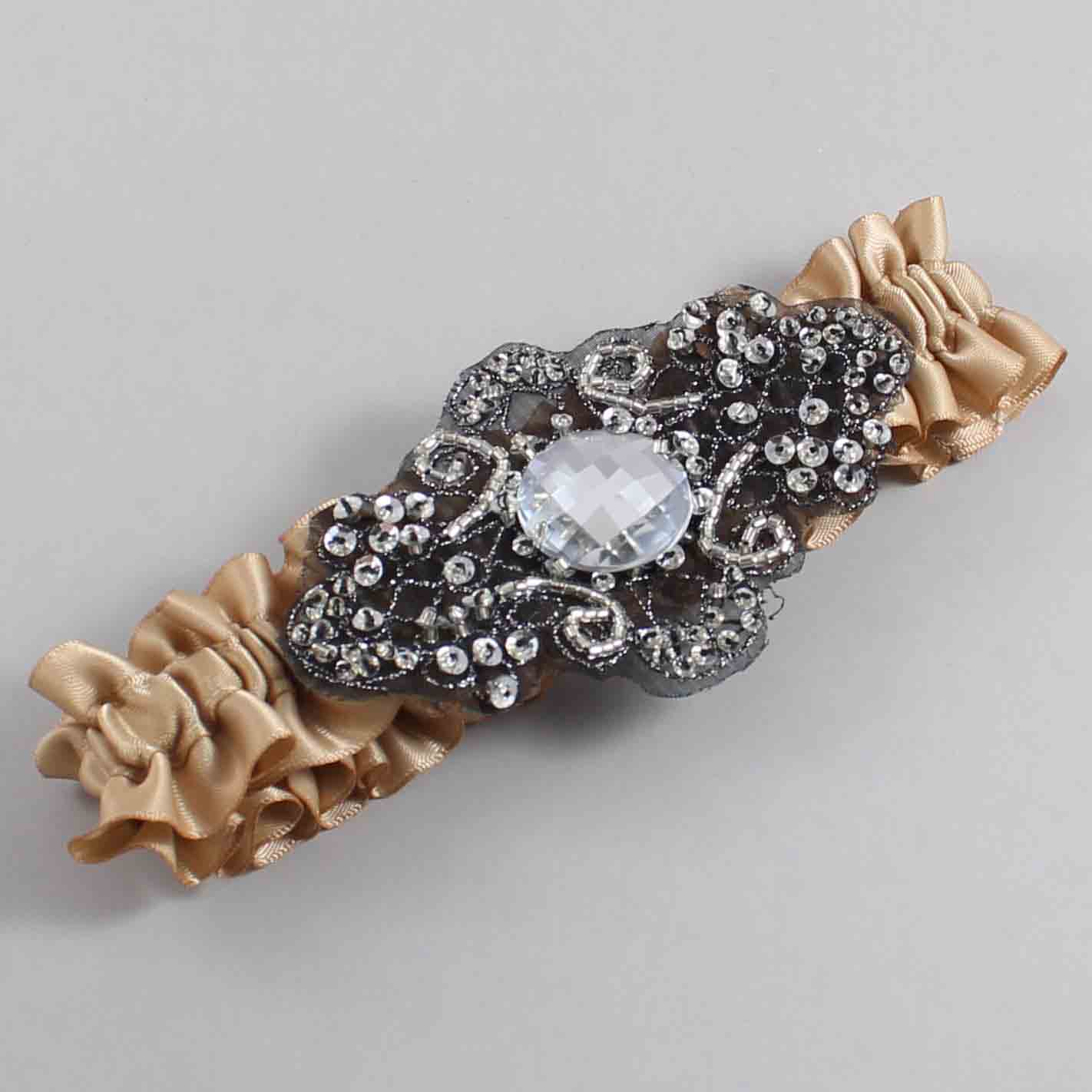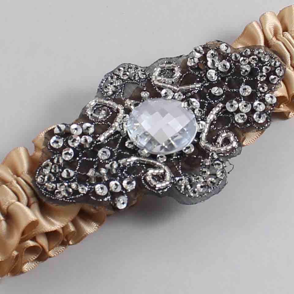 Desert Sand Satin with Black Wedding Garter / Brown Wedding Garters / Bijou #01-A02-(830-830)-Black