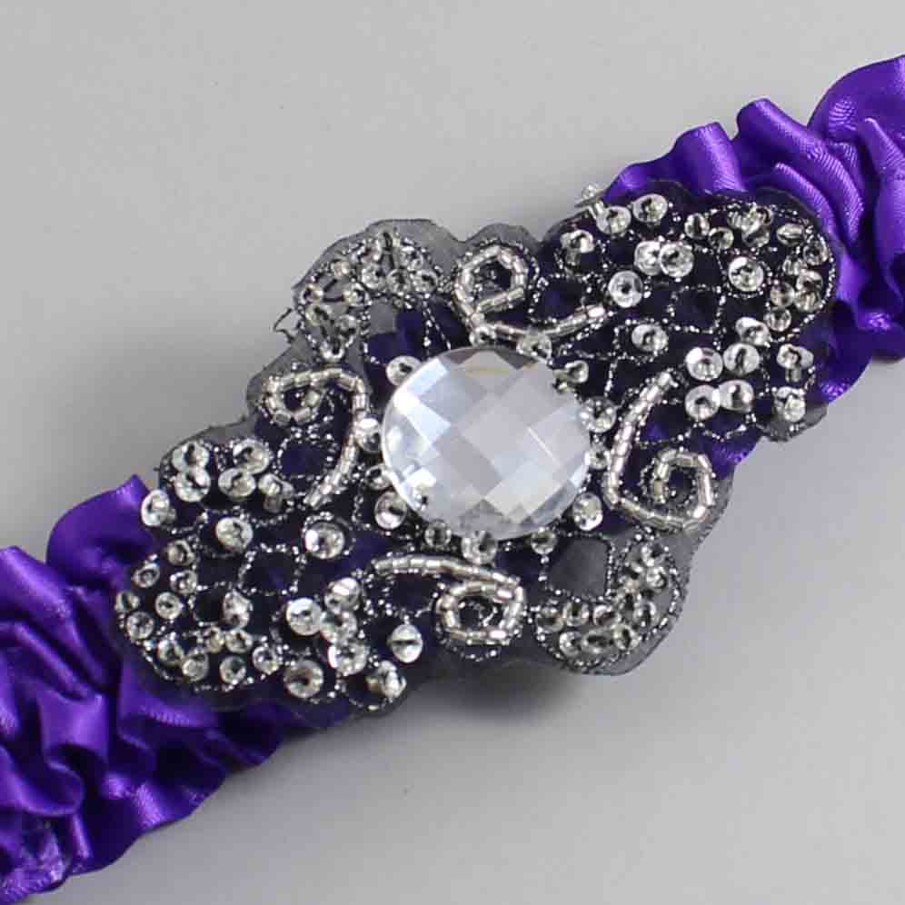 Eggplant Satin with Black Wedding Garter / Purple Wedding Garters / Bijou #01-A02-(465-465)-Black