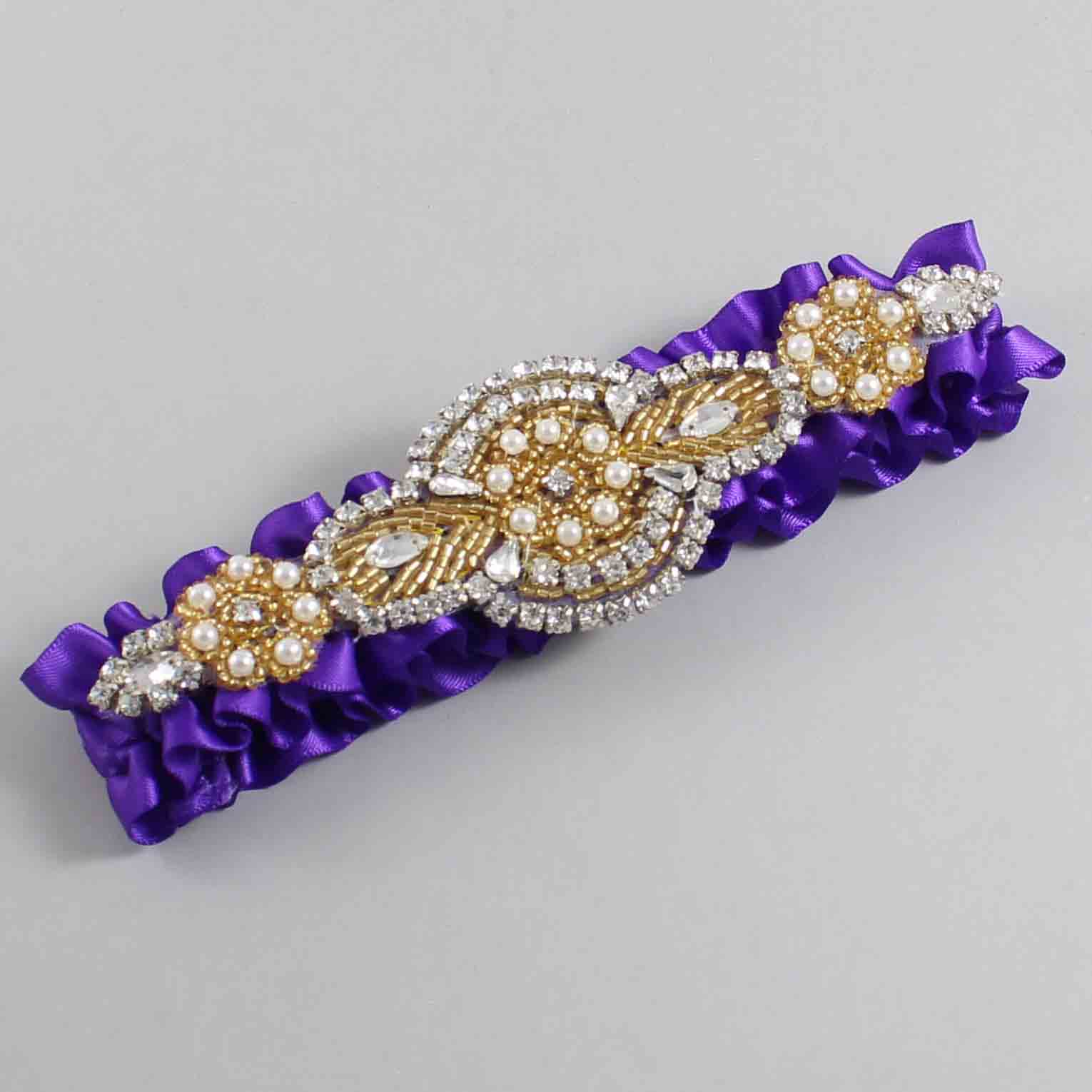 Eggplant Satin with Gold Wedding Garter / Purple Wedding Garters / Charlotte #01-A05-(465-465)-Gold