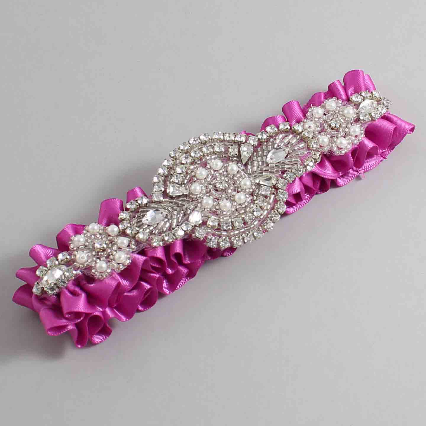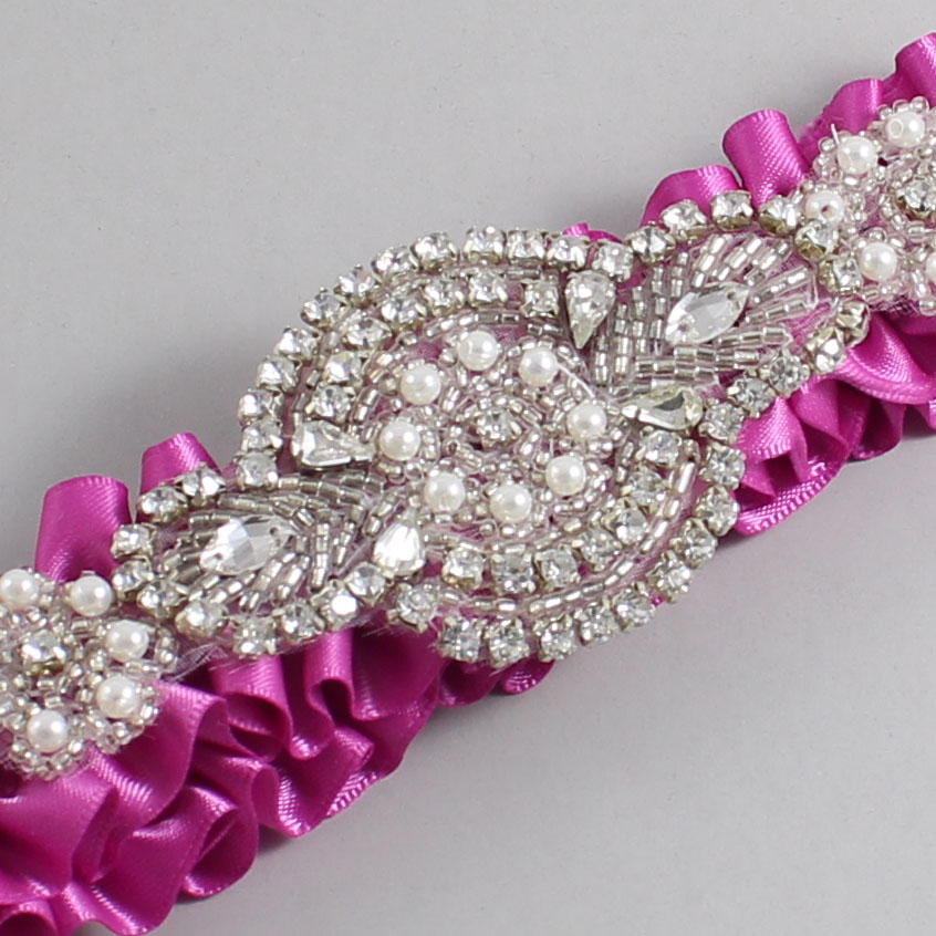 Garden Rose Satin Wedding Garter / Solid Pink Wedding Garters / Charlotte #01-A06-(183-183)-Silver