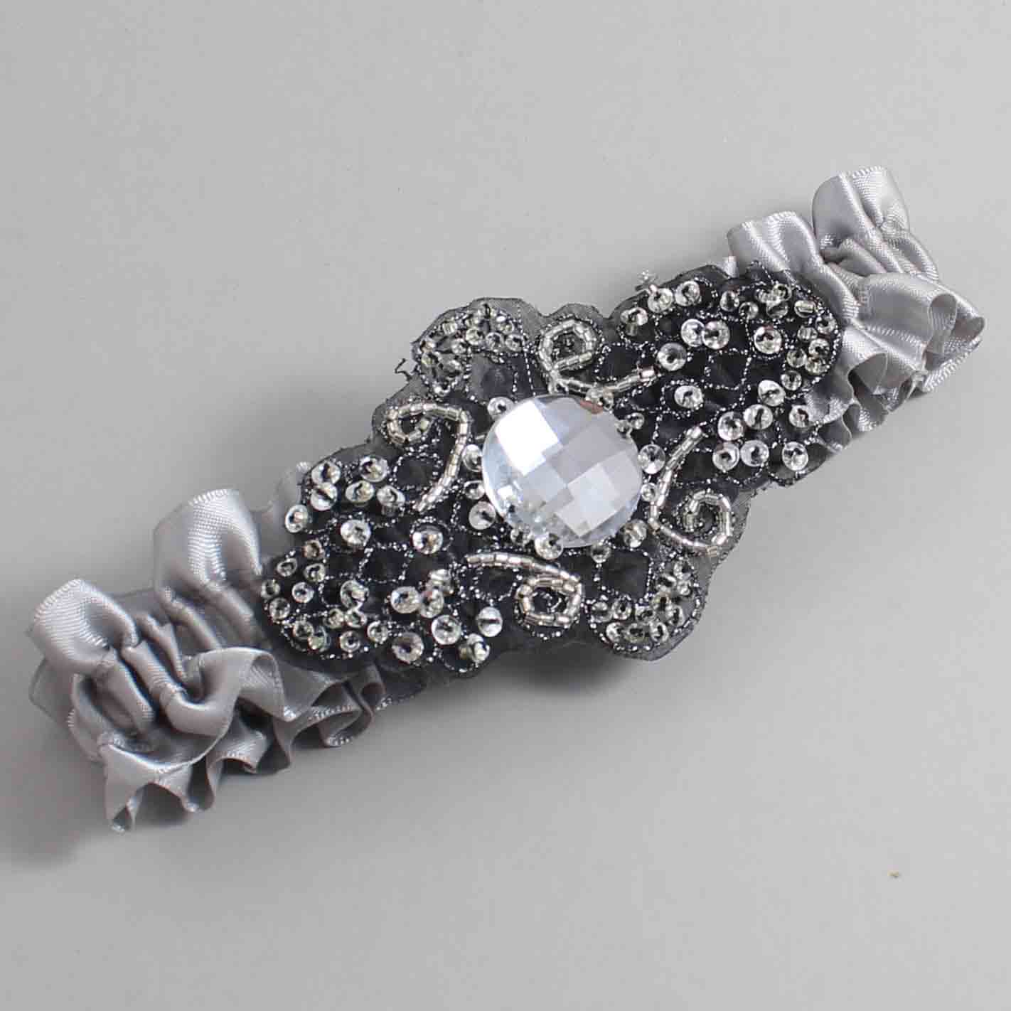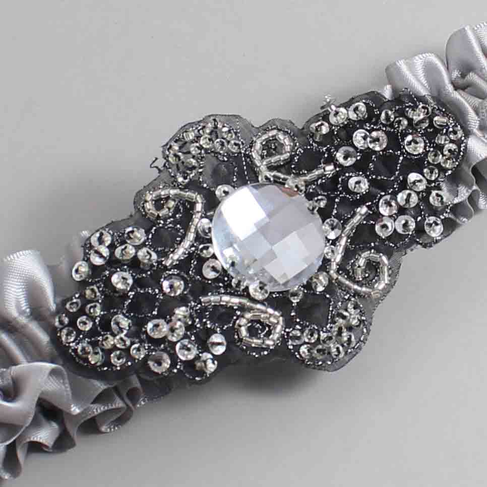Grey with Black Wedding Garter / Gray Wedding Garters / Bijou #01-A02-(012-012)-Black