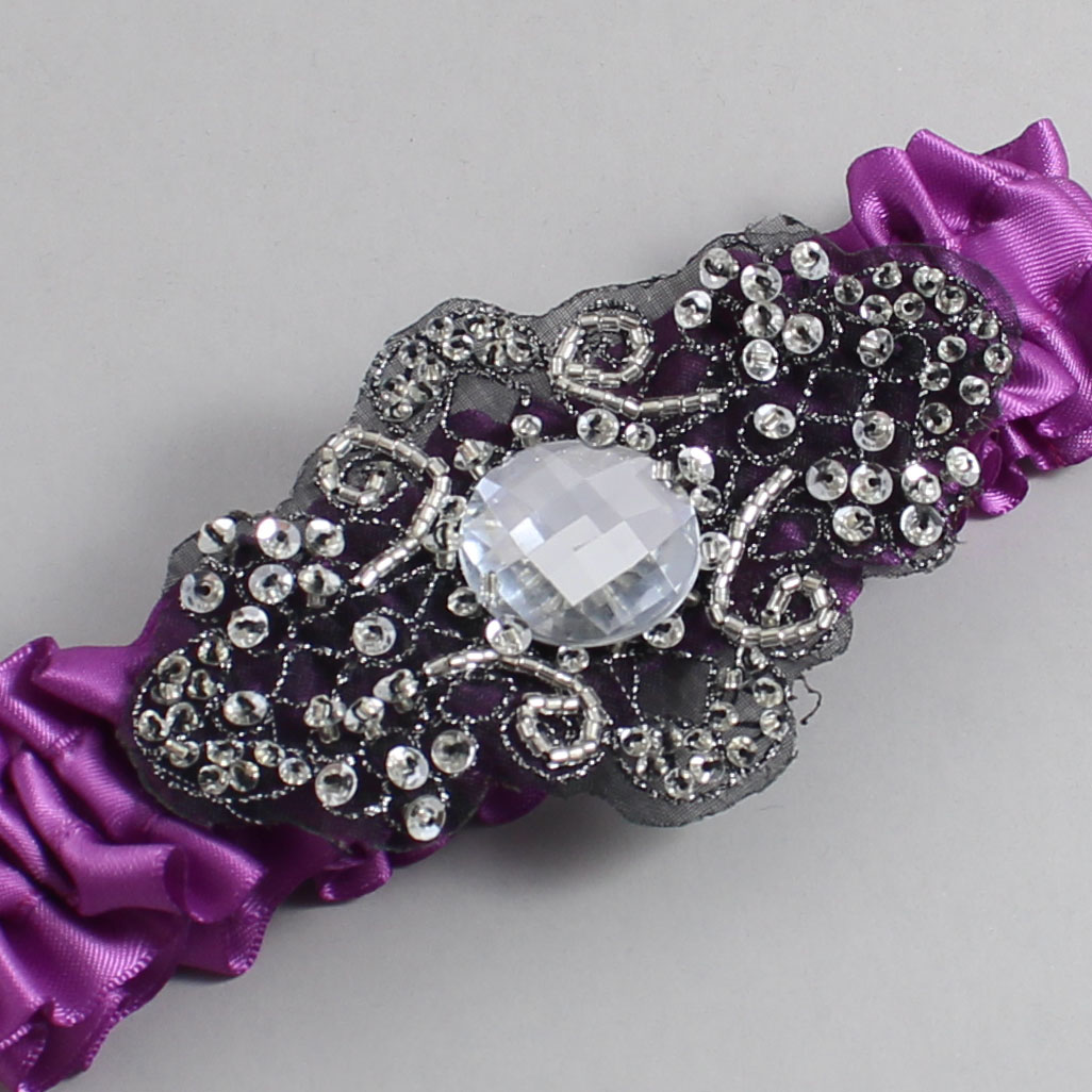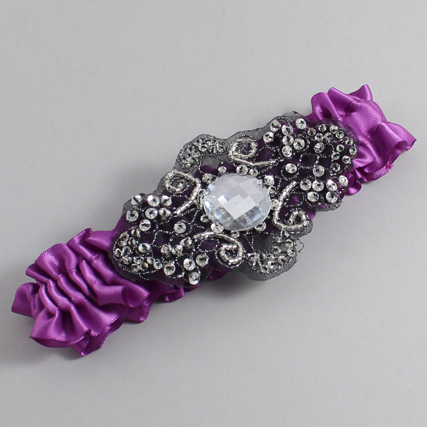 Helio Satin with Black Wedding Garter / Purple Wedding Garters / Bijou #01-A02-(541-541)-Black