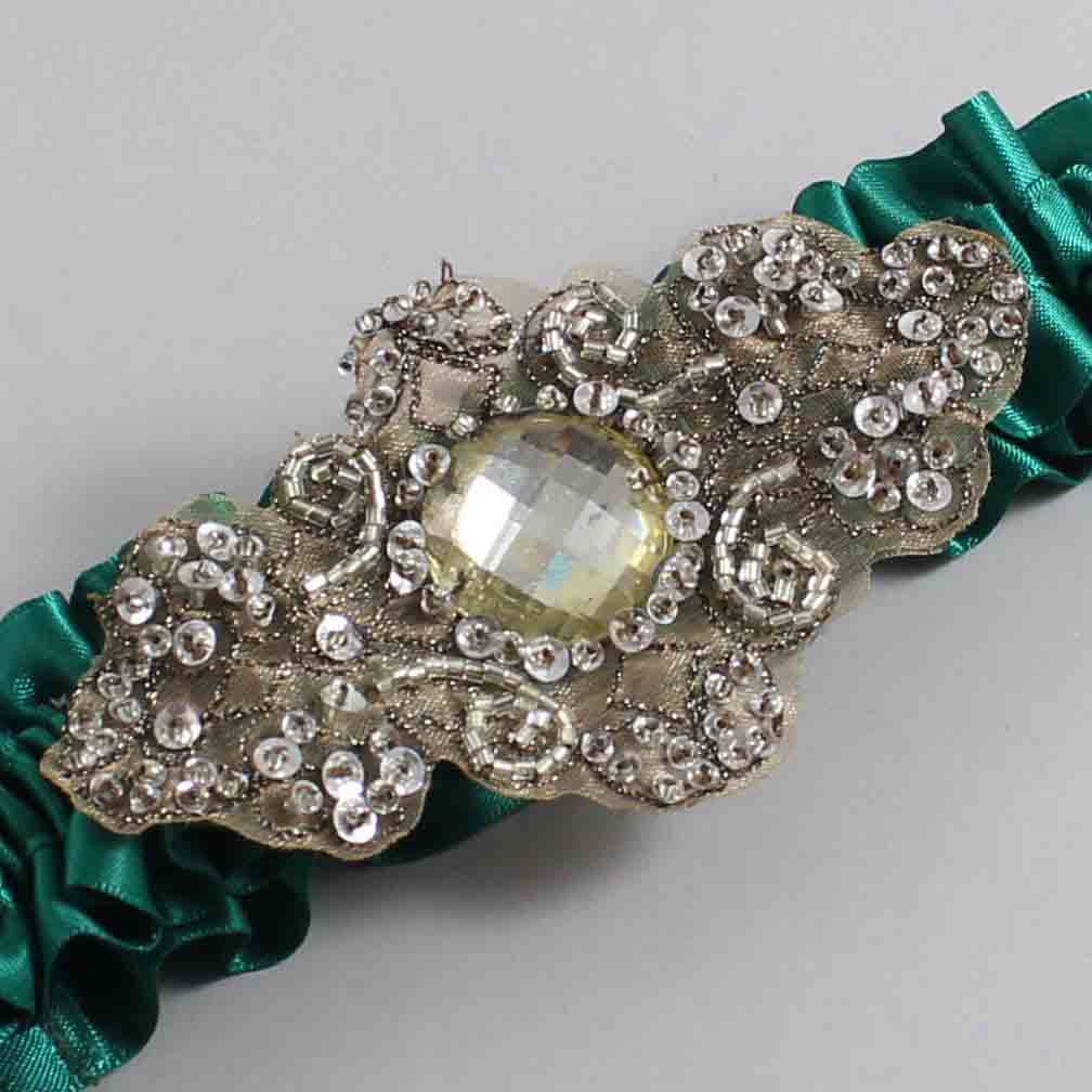 Hunter Green Satin with Brown Wedding Garter / Green Wedding Garters / Bijou # 01-A01-(925-925)-Antique