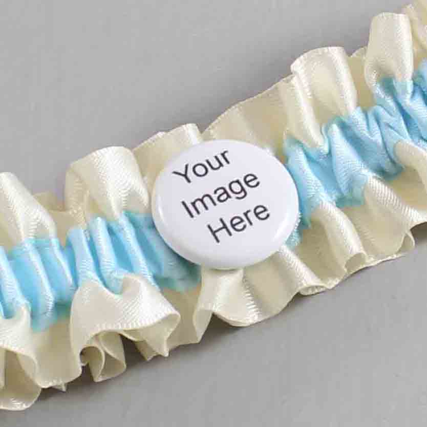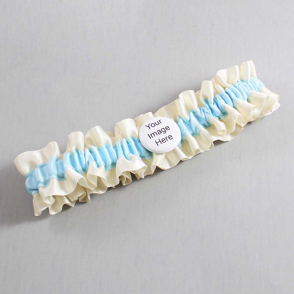Ivory and Alice Blue Satin Wedding Garter / Ivory and Blue Wedding Garters / Custom Button # (871-305)-01-M44