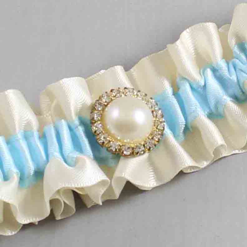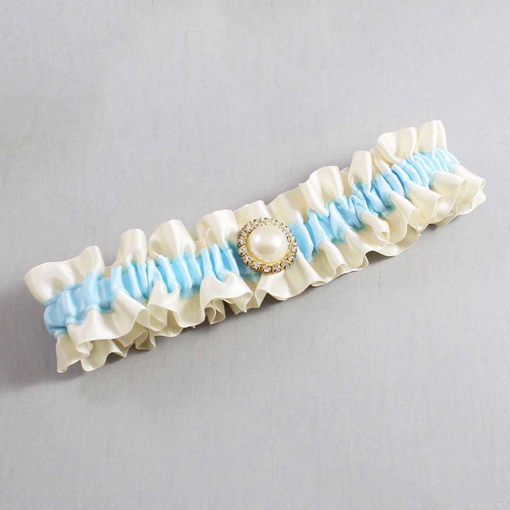 Ivory and Alice Blue Satin Wedding Garter / Ivory and Blue Wedding Garters / Dana # (871-305)-01-M21