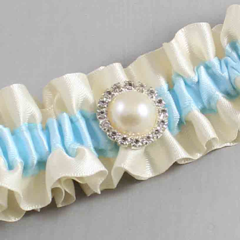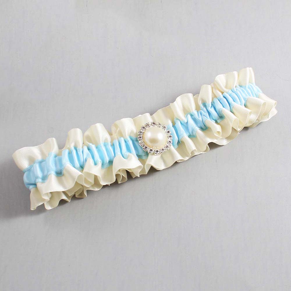 Ivory and Alice Blue Satin Wedding Garter / Ivory and Blue Wedding Garters / Dana # (871-305)-01-M22