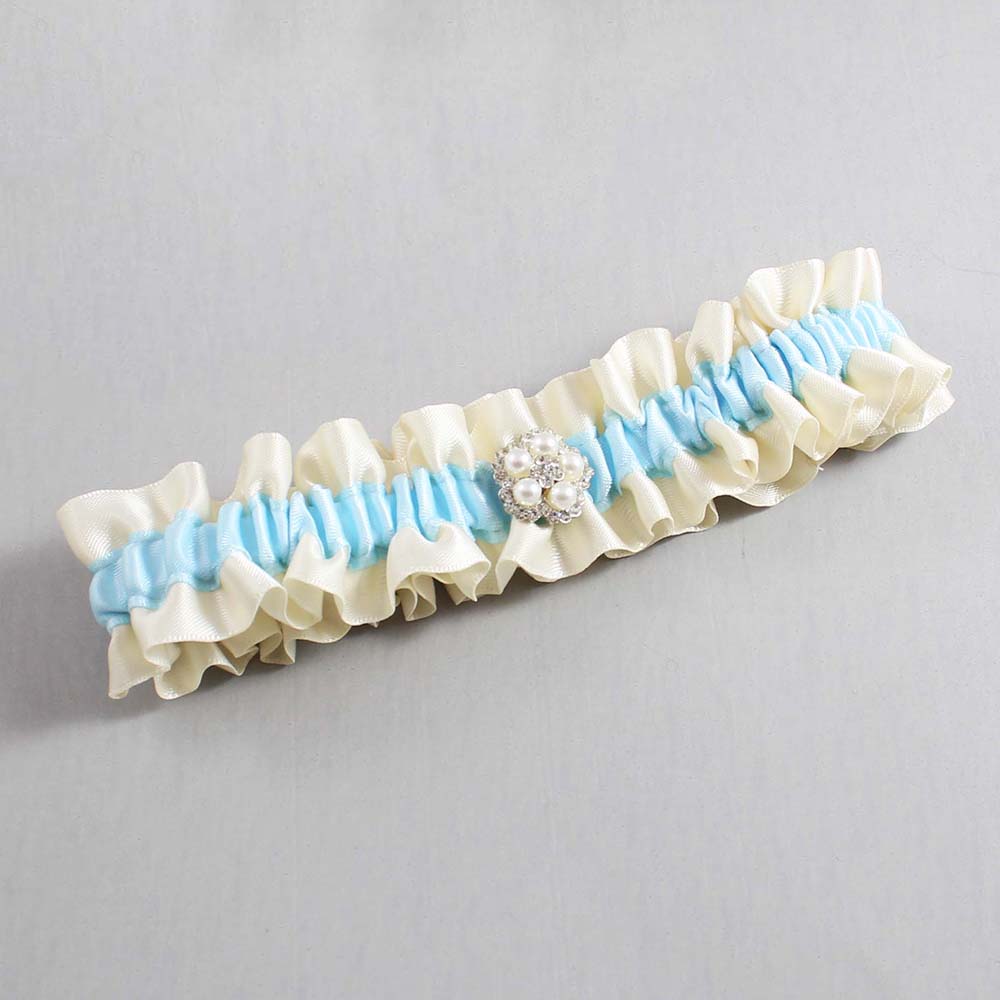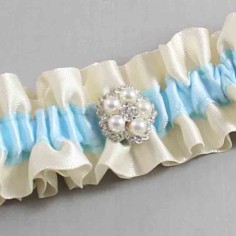 Ivory and Alice Blue Satin Wedding Garter / Ivory and Blue Wedding Garters / Ercia # (871-305)-01-M20