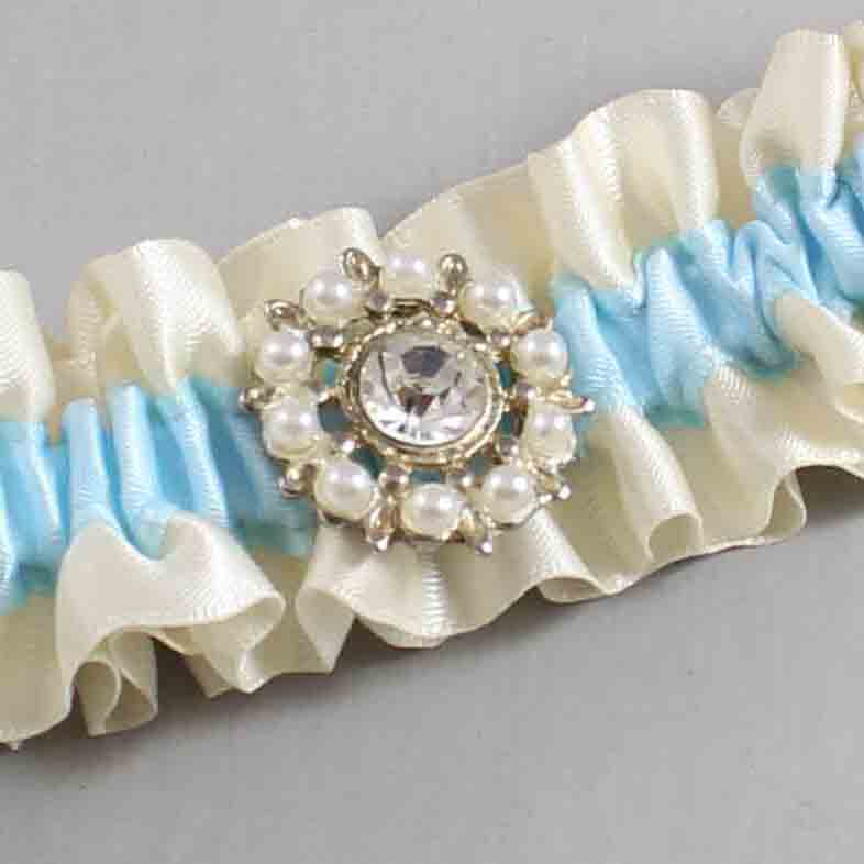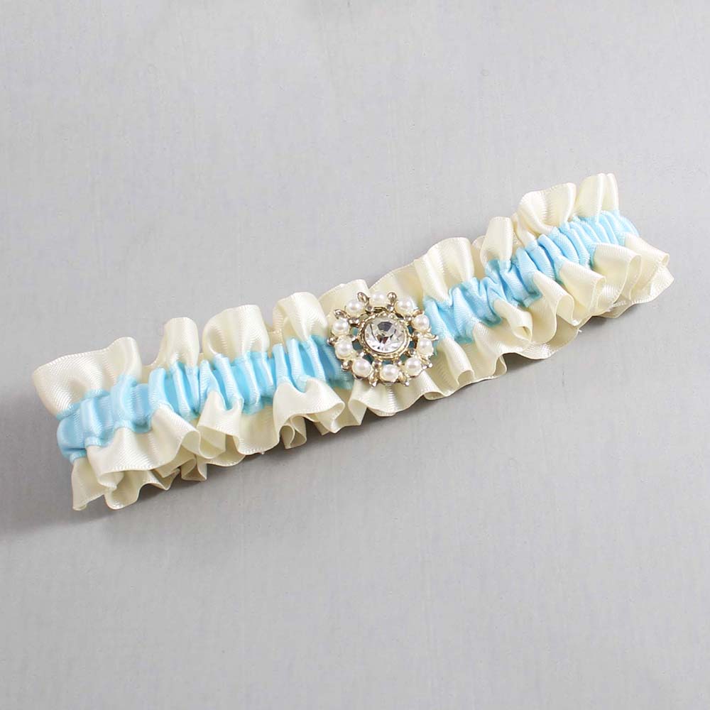 Ivory and Alice Blue Satin Wedding Garter / Ivory and Blue Wedding Garters / Phyllis # (871-305)-01-M14