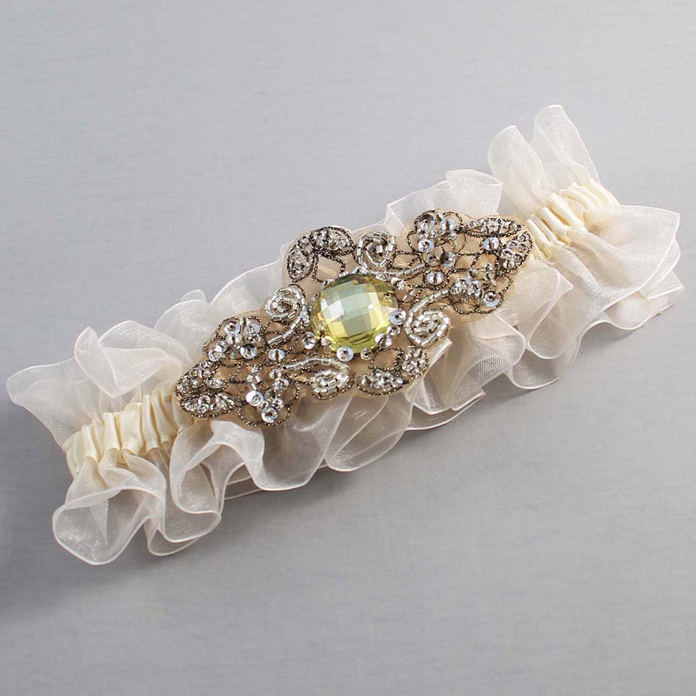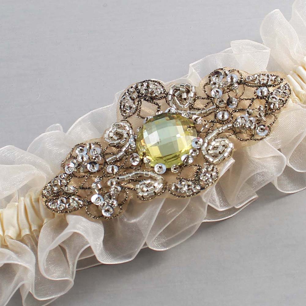 Ivory and Brown Wedding Garter / Ivory Wedding Garters / Bijou # (Ivory-871-871)-13-A01-Antique