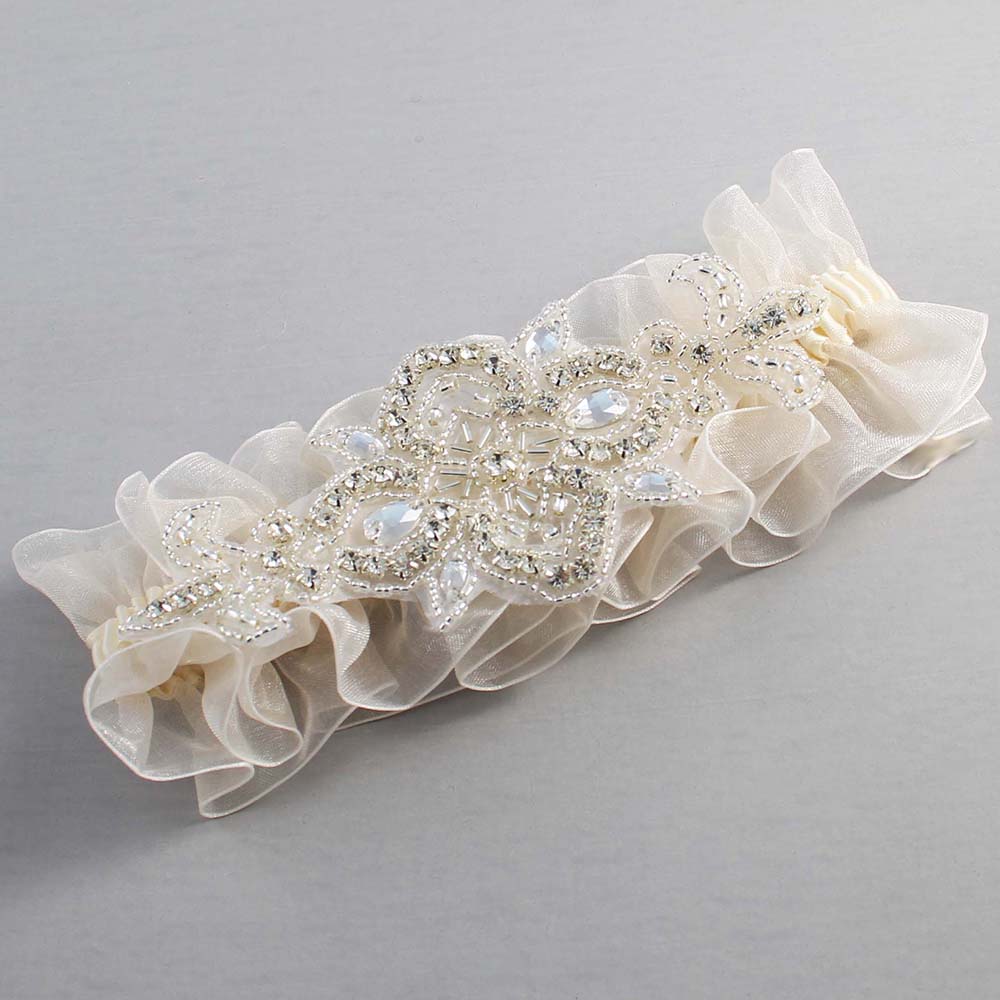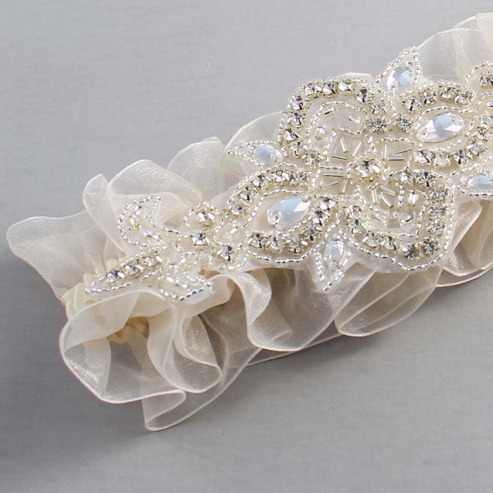 Ivory and Ivory Organza Wedding Garter / Ivory and Solid Ivory Wedding Garters / Isabella # (Ivory-871-871)-13-A08-Silver