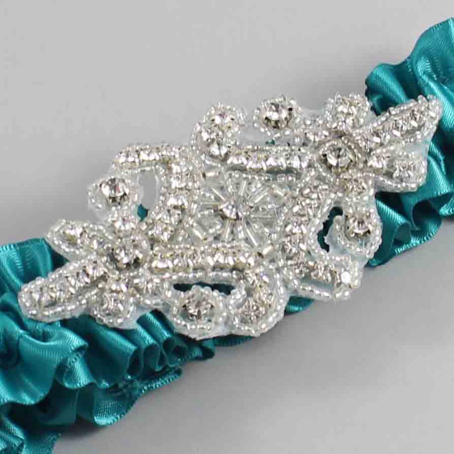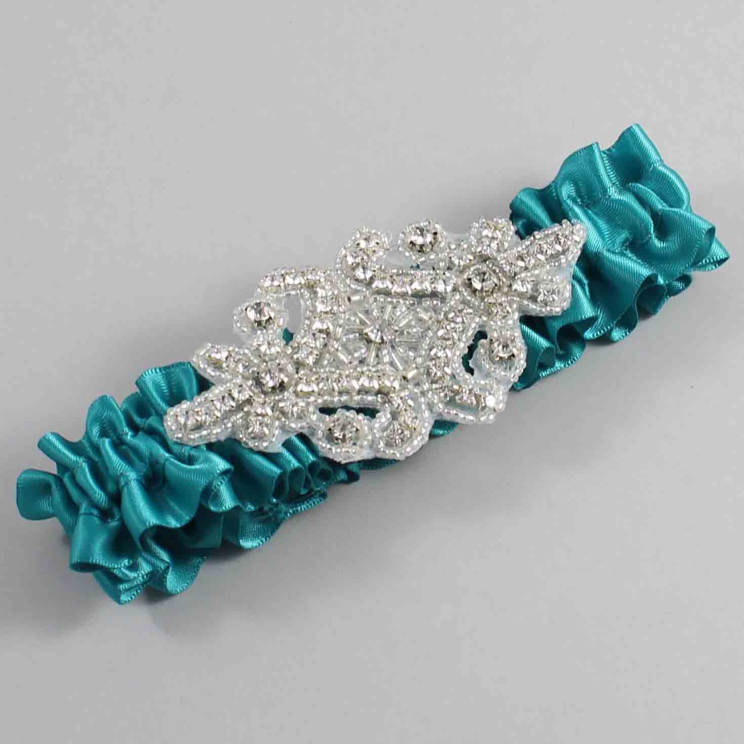 Jade Satin Wedding Garter / Solid Teal Wedding Garters / Heather #01-A07-(346-346)-Silver