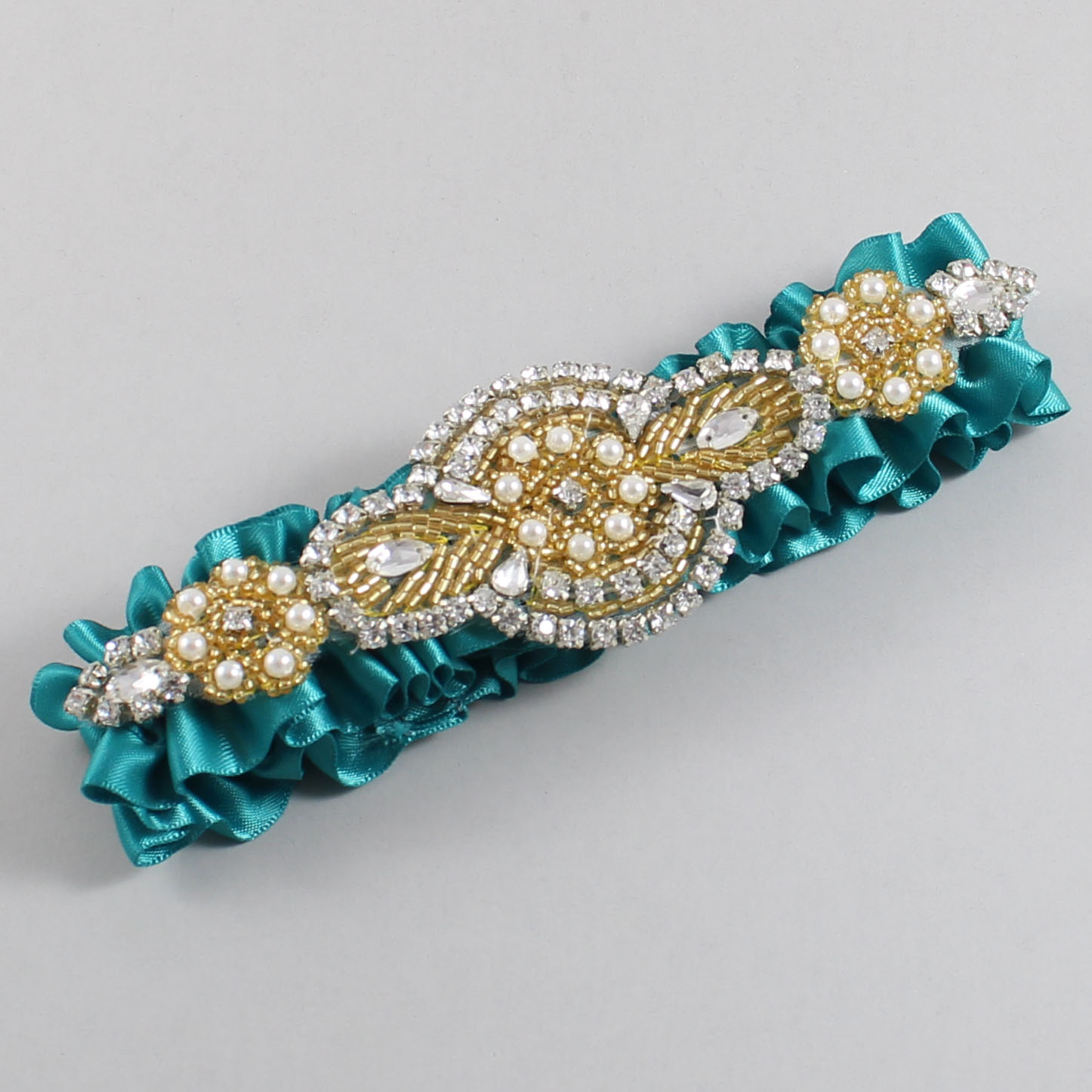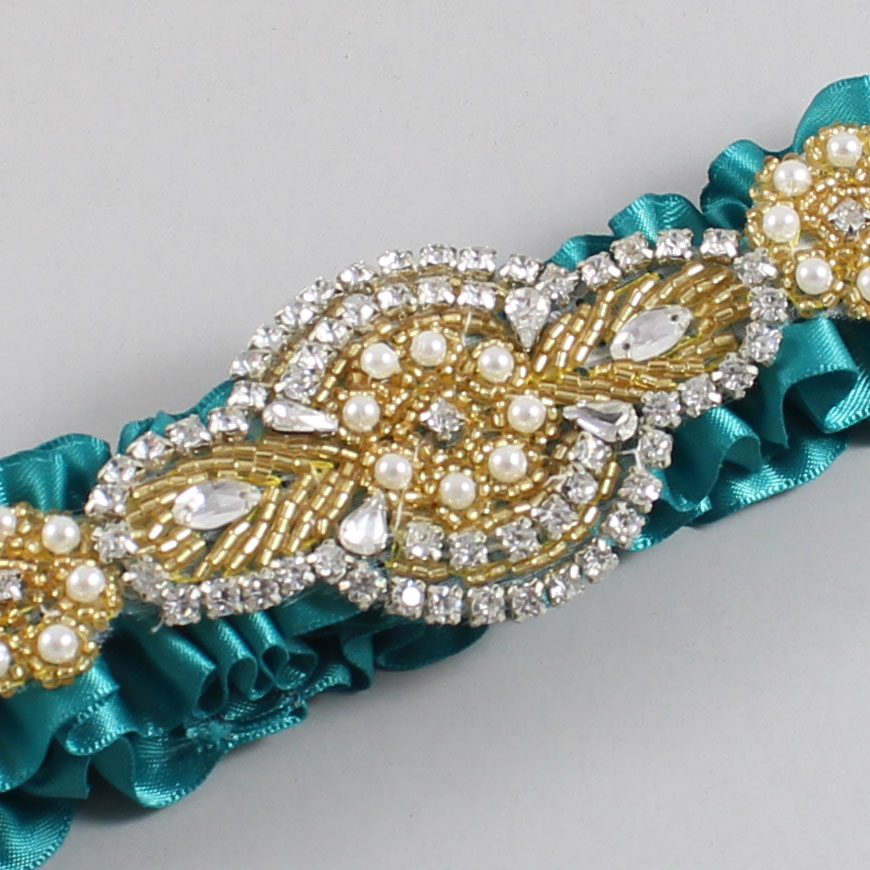 Jade Satin with Gold Wedding Garter / Teal Wedding Garters / Charlotte #01-A05-(346-346)-Gold