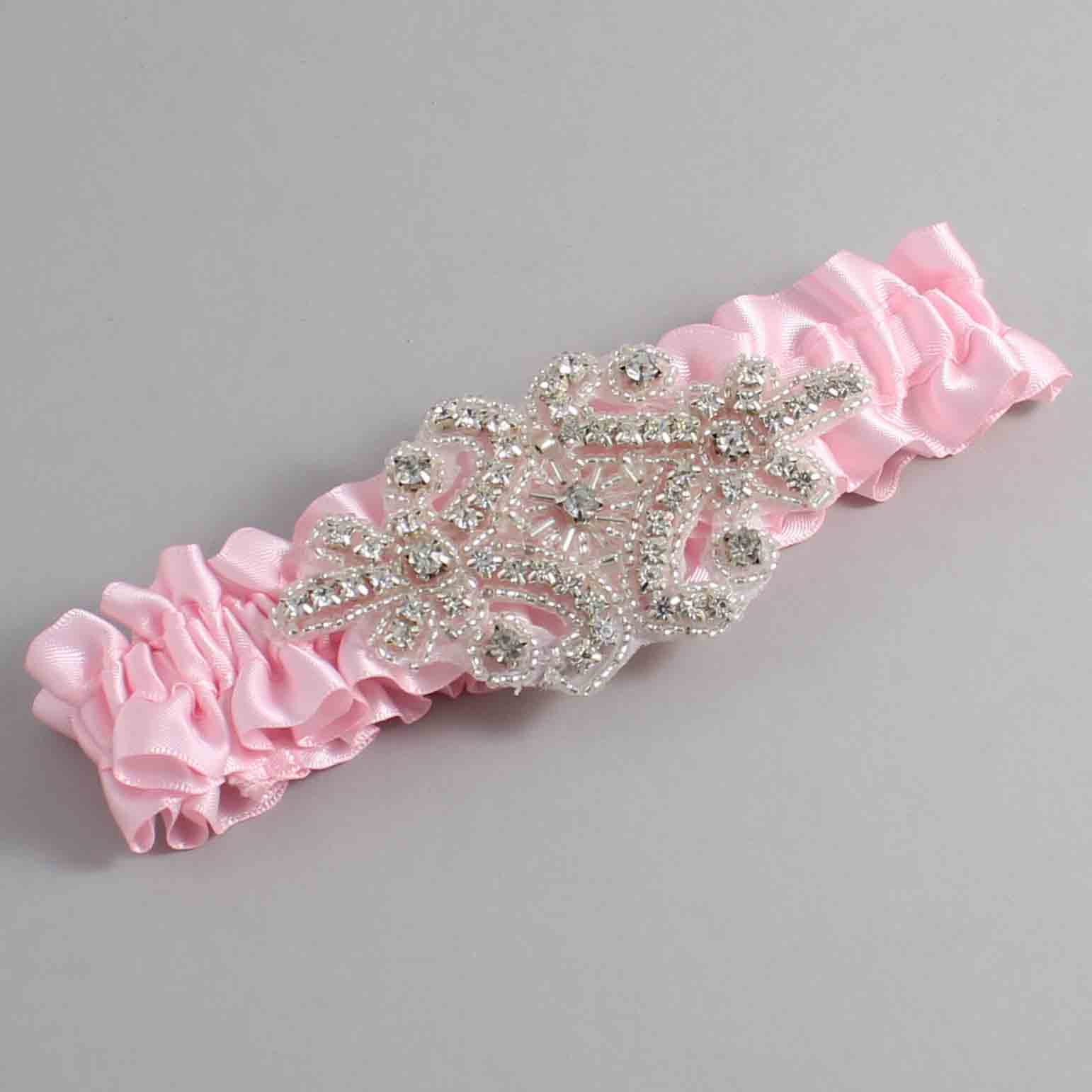 Light Pink Satin Wedding Garter / Solid Pink Wedding Garters / Heather #01-A07-(145-145)-Silver