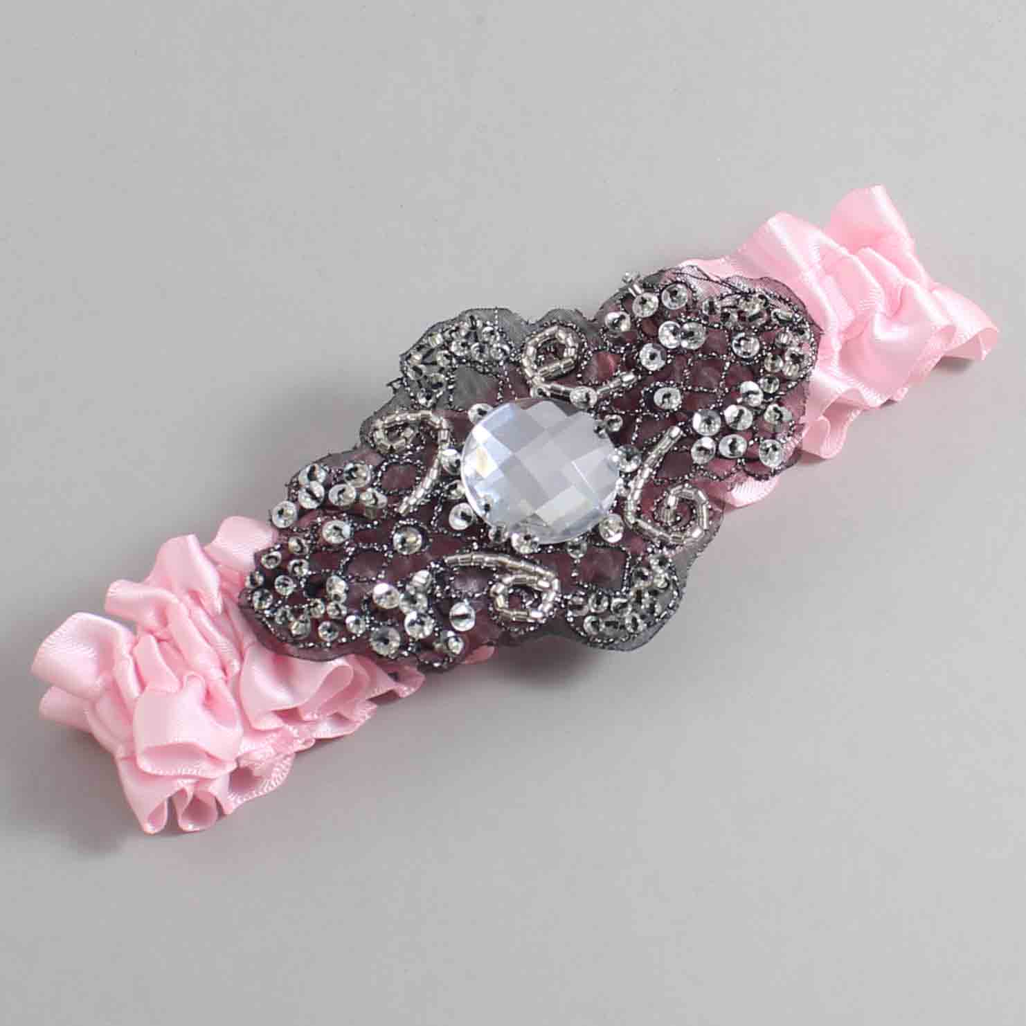 Light Pink Satin with Black Wedding Garter / Pink Wedding Garters / Bijou #01-A02-(145-145)-Black