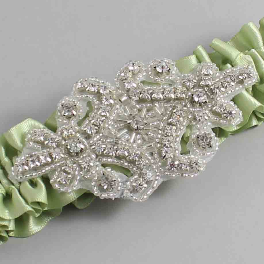 Lime Juice Satin Wedding Garter / Solid Green Wedding Garters / Heather #01-A07-(524-524)-Silver