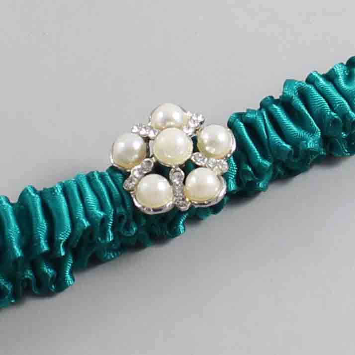 Mallard Satin Wedding Garter / Solid Teal Wedding Garters / Liza #(342-342)-03-M13