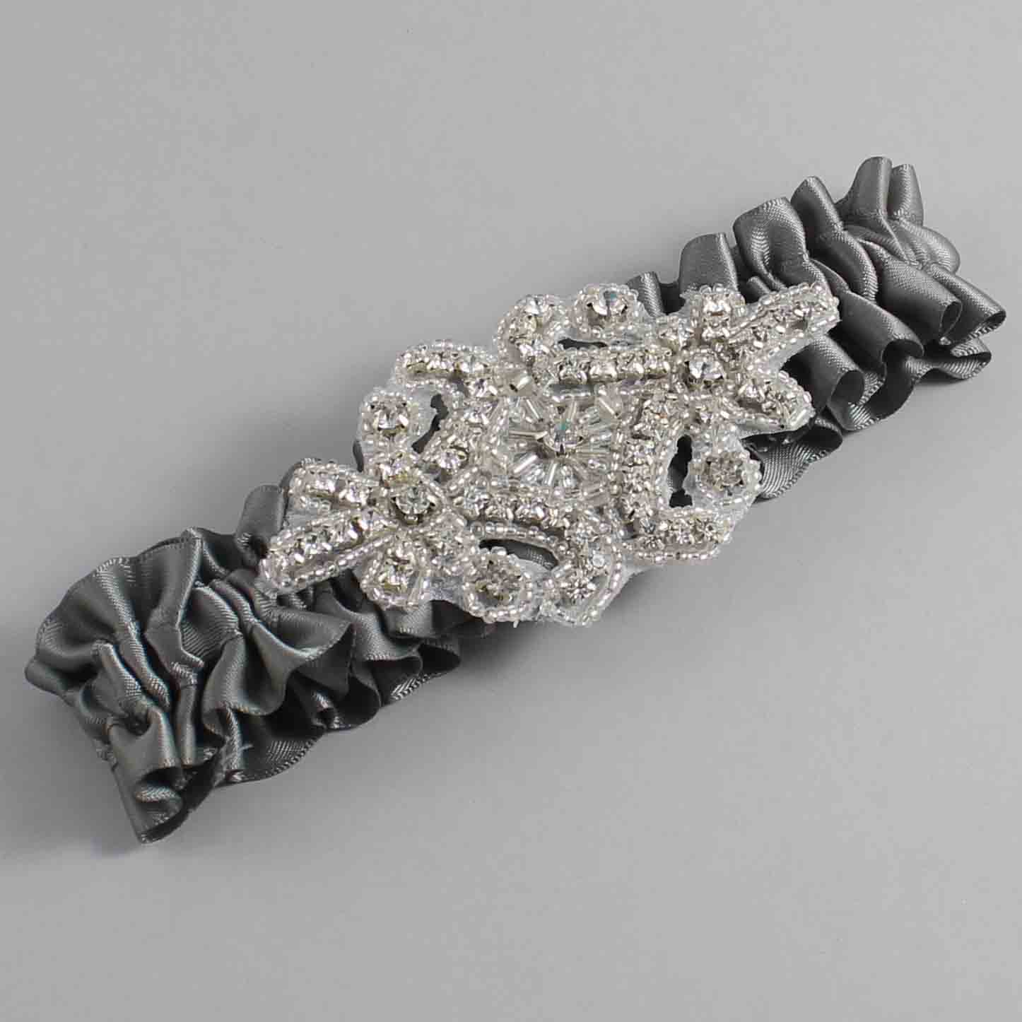 Metal Gray Wedding Garter / Solid Gray Wedding Garters / Heather #01-A07-(017-017)-Silver