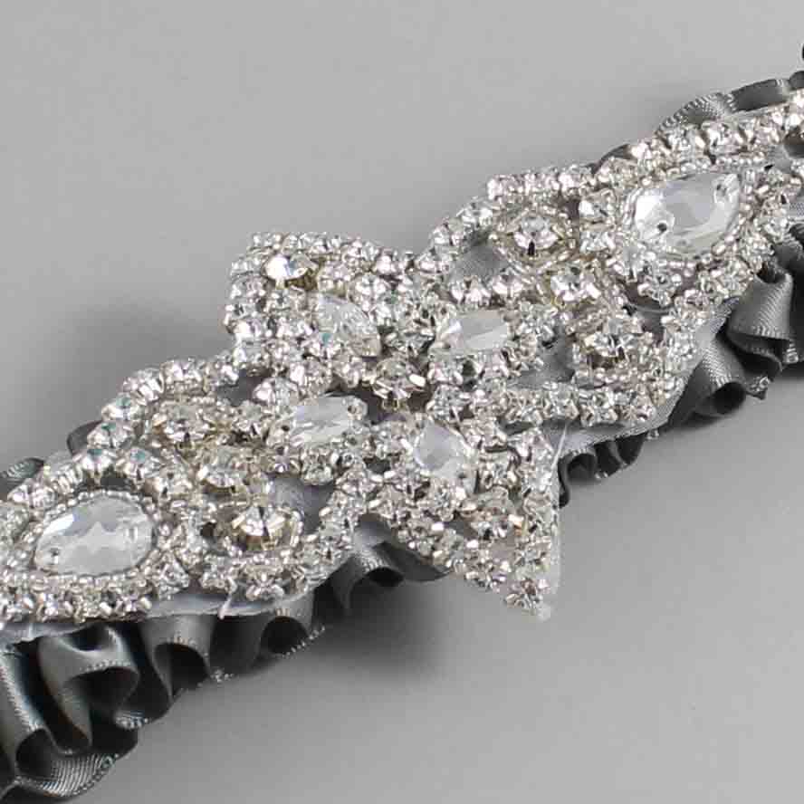 Metal Gray Wedding Garter / Solid Gray Wedding Garters / Lorine #01-A09-(017-017)-Silver