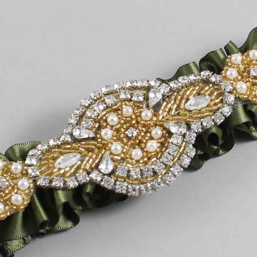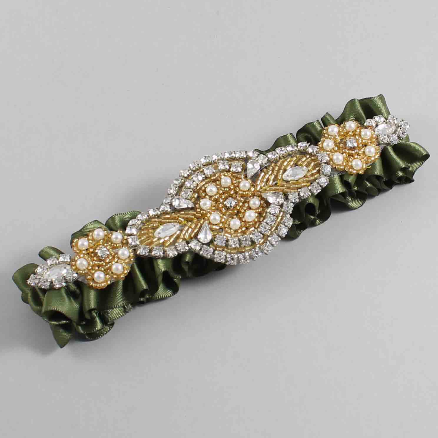 Moss Satin with Gold Wedding Garter / Green Wedding Garters / Charlotte #01-A05-(570-570)-Gold