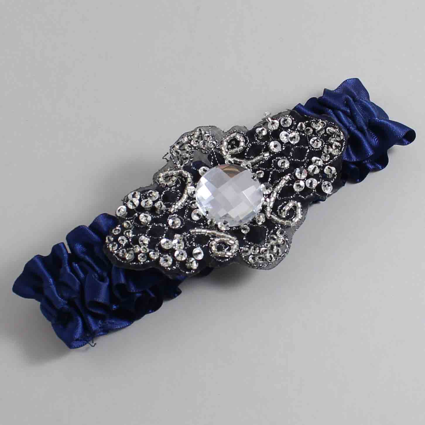 Home » Shop » Shop by Color » Shop by Satin Color » Navy Blue Wedding Garters 508 » Navy Blue Satin with Black Wedding Garter / Blue Wedding Garters / Bijou # (508-508)-01-A02-Black