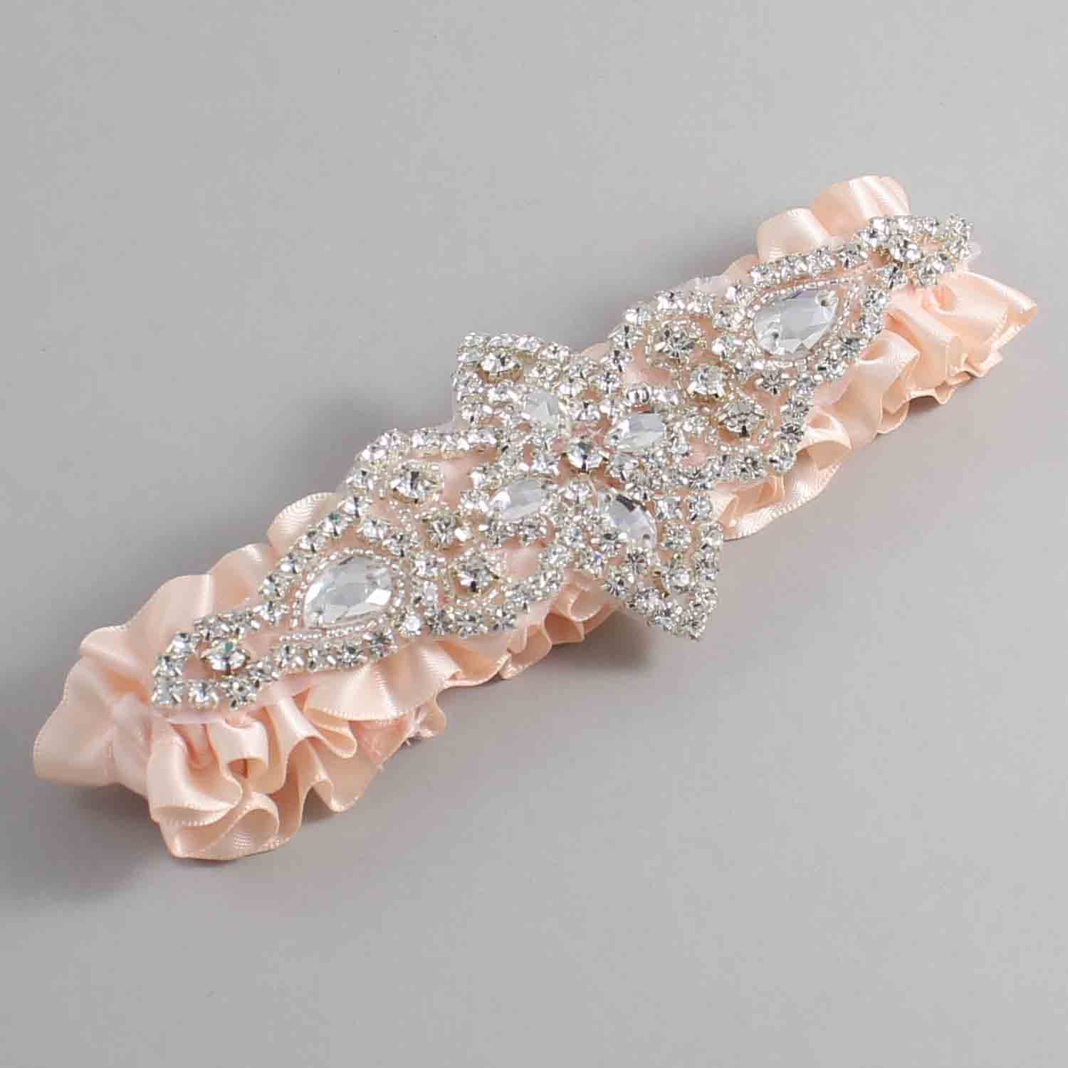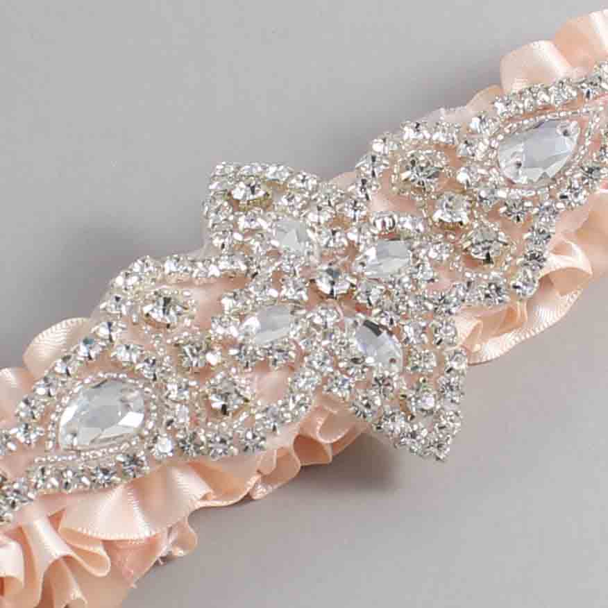 Nude Satin Wedding Garter / Solid Orange Wedding Garters / Lorine #01-A09-(113-113)-Silver