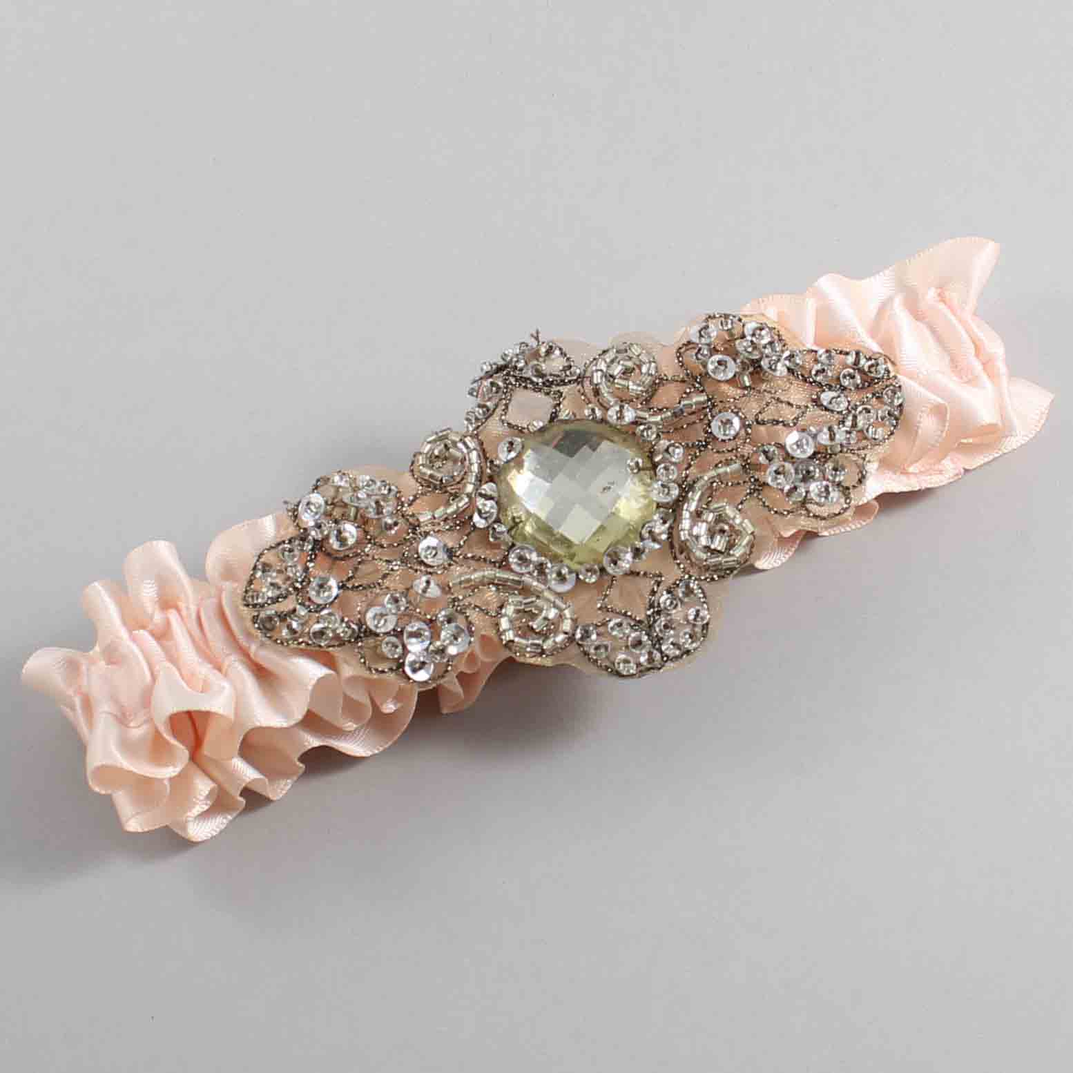 Nude Satin with Brown Wedding Garter / Orange Wedding Garters / Bijou # 01-A01-(113-113)-Antique
