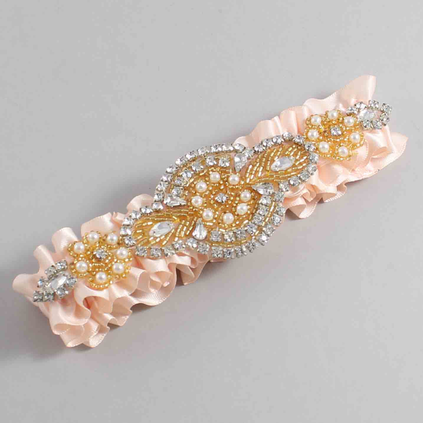 Nude Satin with Gold Wedding Garter / Orange Wedding Garters / Charlotte #01-A05-(113-113)-Gold