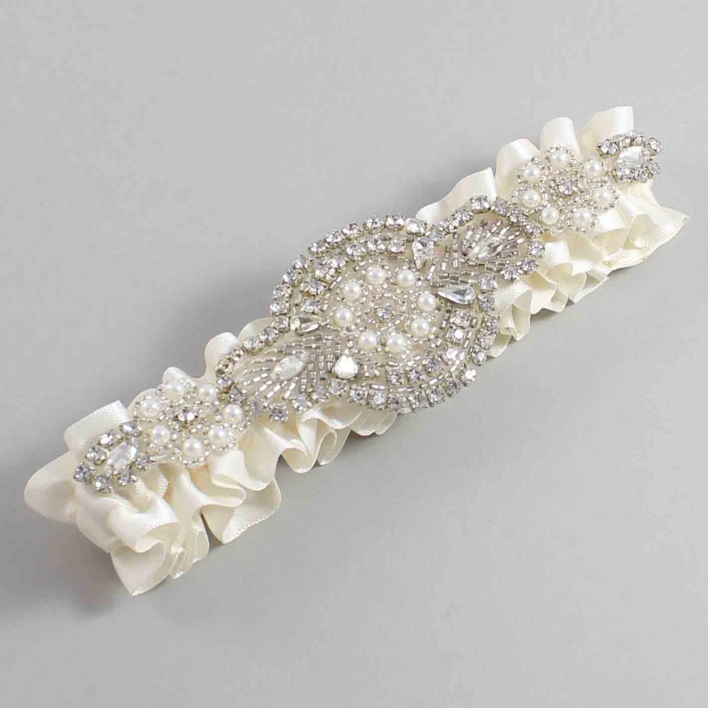 Old Lace Satin Wedding Garter / Solid Ivory Wedding Garters / Charlotte #01-A06-(028-028)-Silver