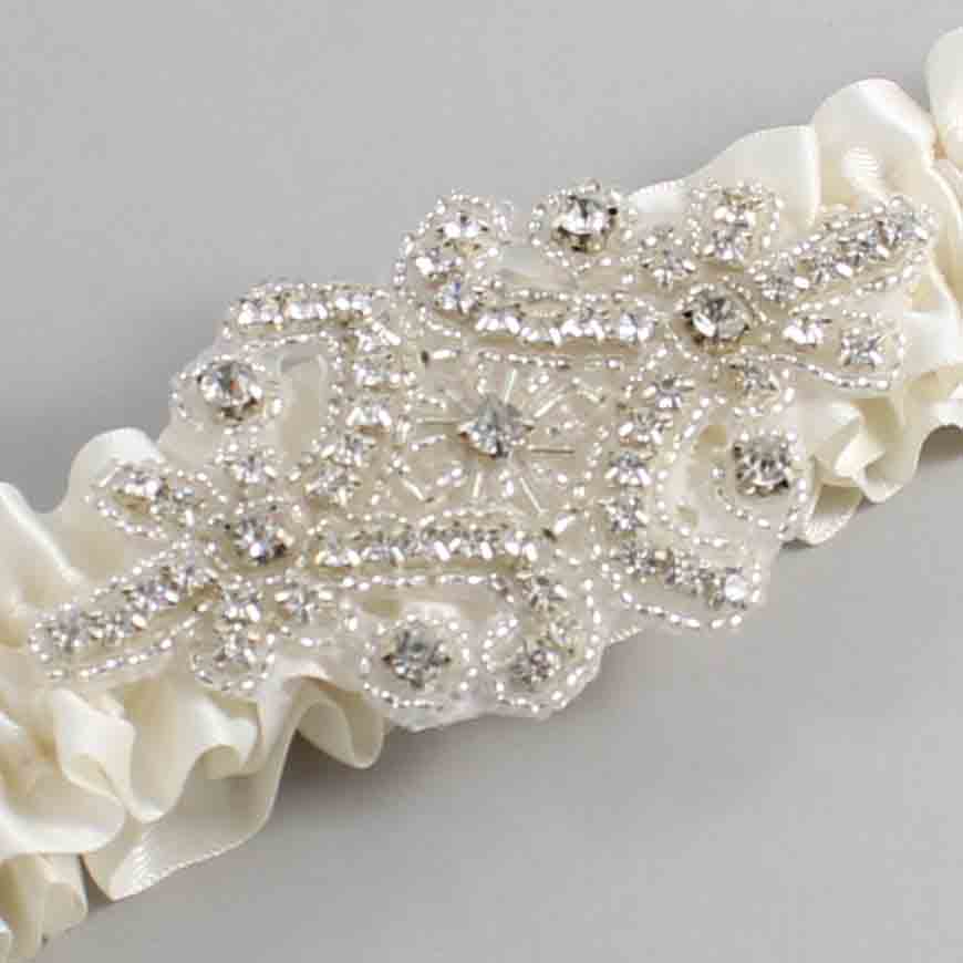 Old Lace Satin Wedding Garter / Solid Ivory Wedding Garters / Heather #01-A07-(028-028)-Silver